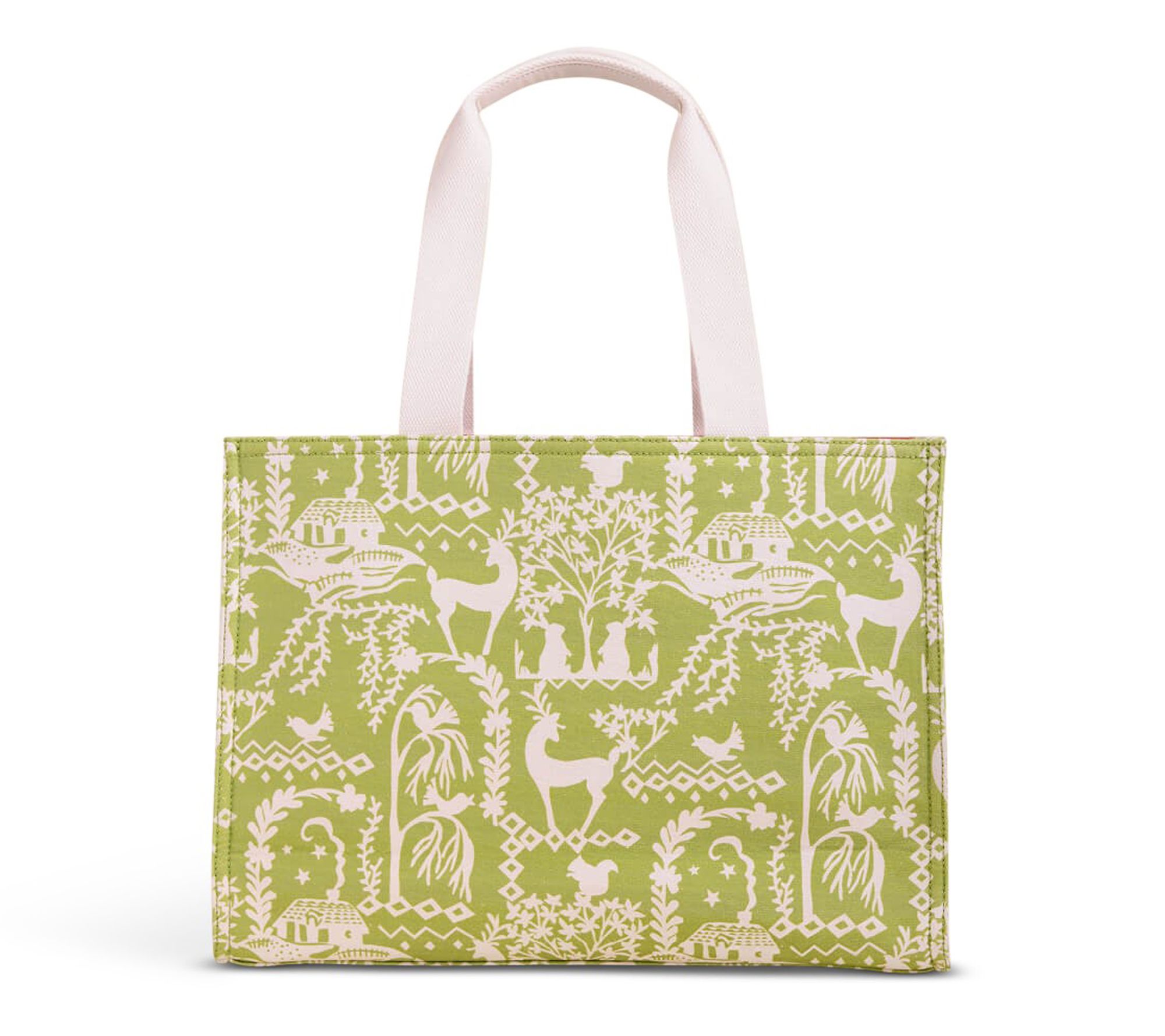 Whether you're running errands or enjoying a sunny afternoon stroll, this spacious tote is ready to carry all your essentials in style. Durable woven cotton and linen in the charming Woodland print pairs with comfortable cotton-webbed double handles, making it easy to sling over your shoulder for any outing. From Spartina 449.
