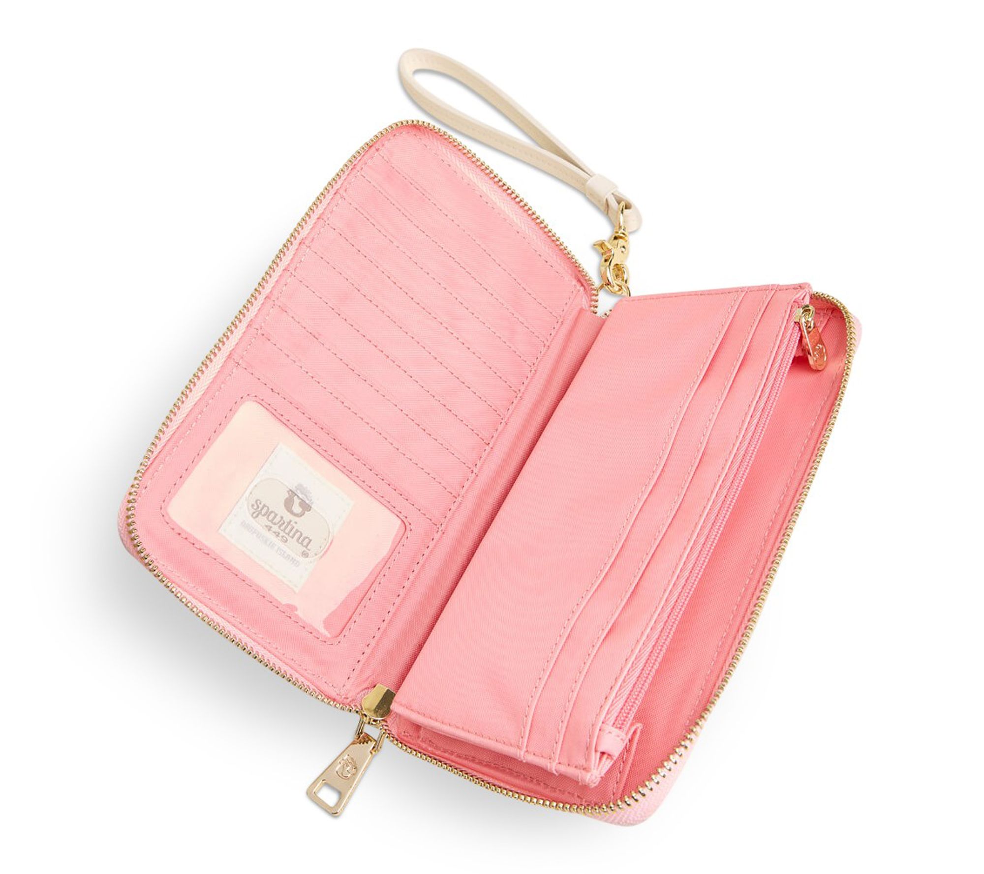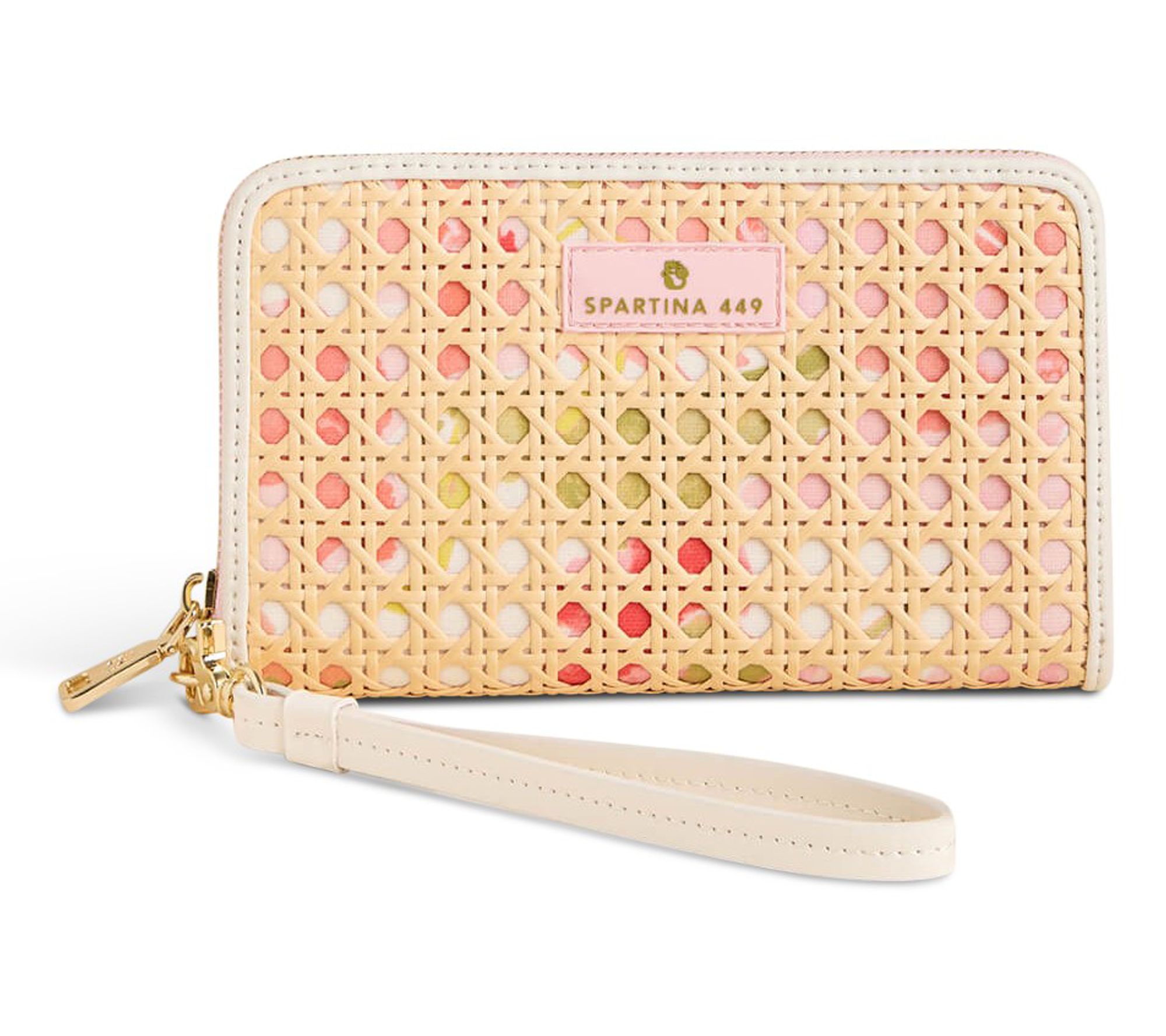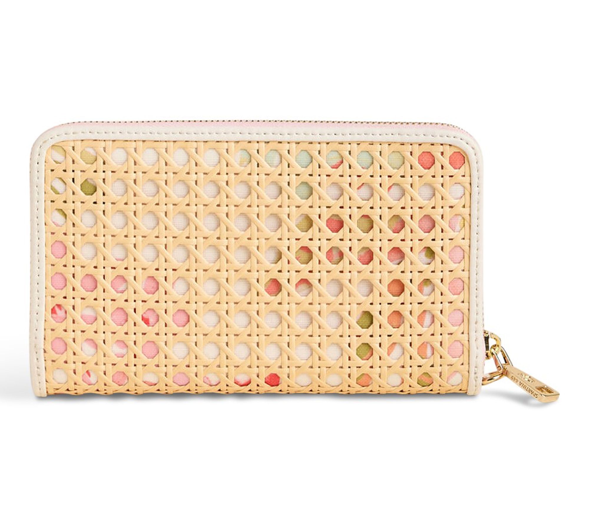 Whether you're headed out for a quick coffee run or exploring a tropical getaway, this stylish wallet offers a splash of vacation vibes while keeping your essentials organized. The woven faux cane exterior lends eye-catching texture and color, with smartly designed slots and pockets ready to stash cards, bills, and coins. From Spartina 449.
