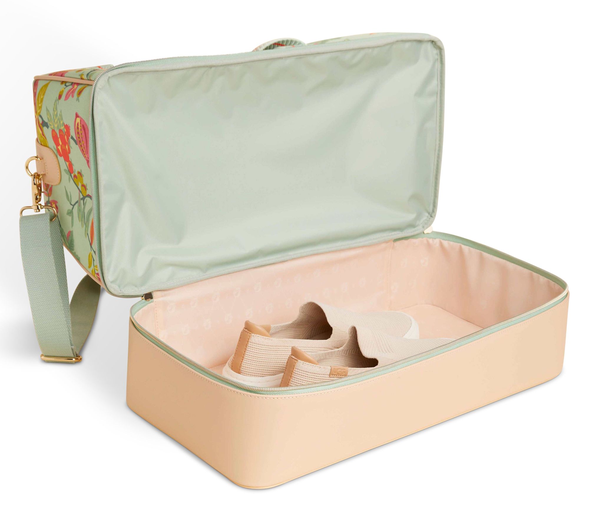 Effortlessly pack up for your next adventure with the Spartina 449 Weekender Bag in Richmond Hill Sea Foam. This spacious travel bag offers both style and practicality with features like a splash-proof, stain-resistant finish, and a detachable crossbody strap for versatility. The roomy interior keeps you organized with multiple pockets, while the bottom zipper compartment is perfect for isolating shoes or toiletries. From Spartina 449.