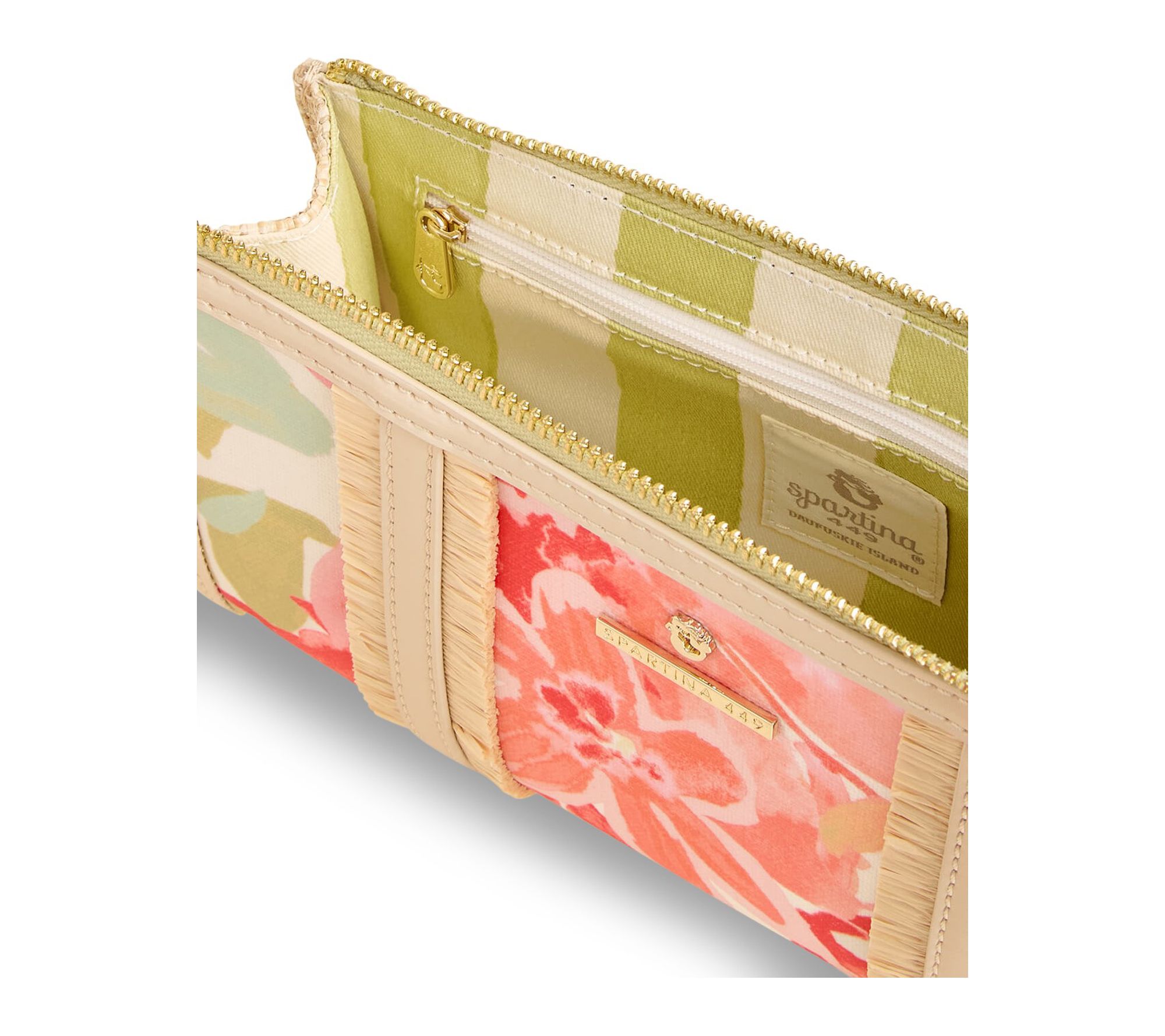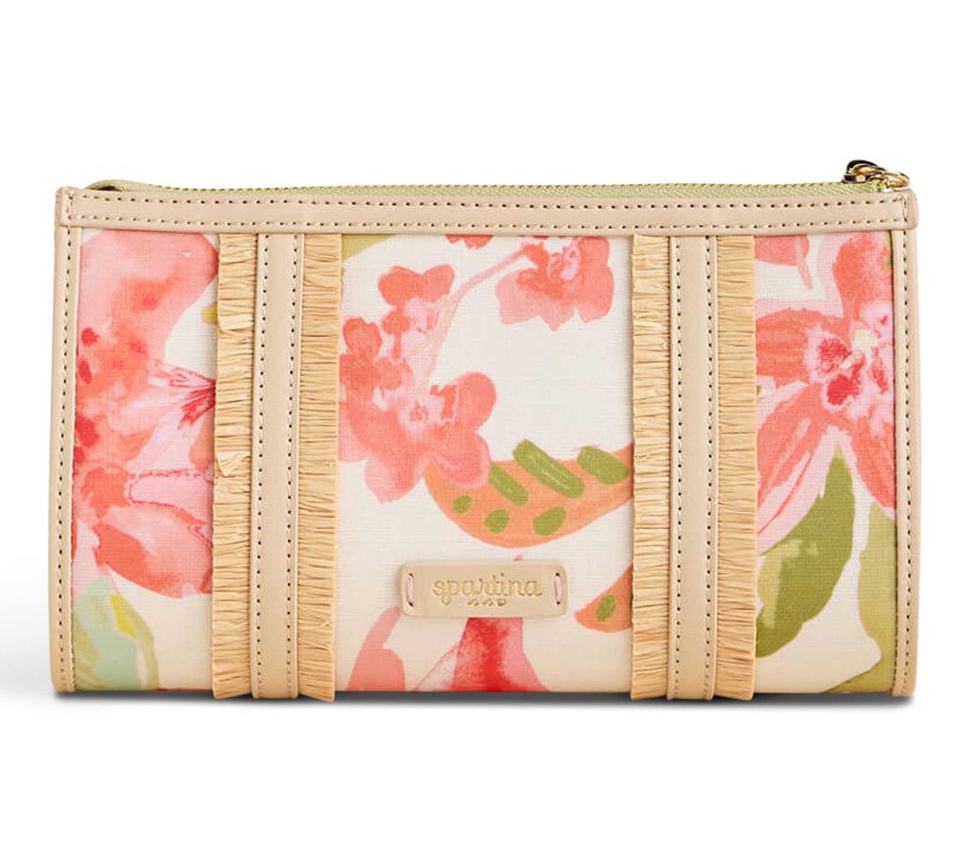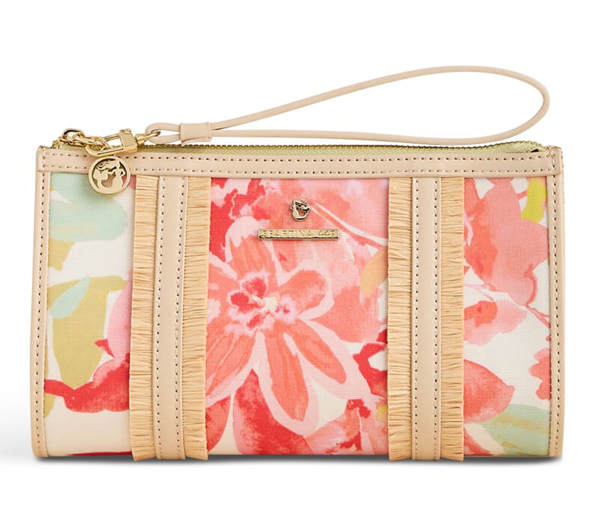 Take a stroll along the boardwalk or sail into the weekend with this Winslow wristlet at your side -- crafted for style and ease with laminated coated cotton and a playful Castillo Tropical print. Effortlessly slip in your essentials, while three RFID-protected card slots and a secure zip-top closure keep everything organized and safe from day to night. From Spartina 449.