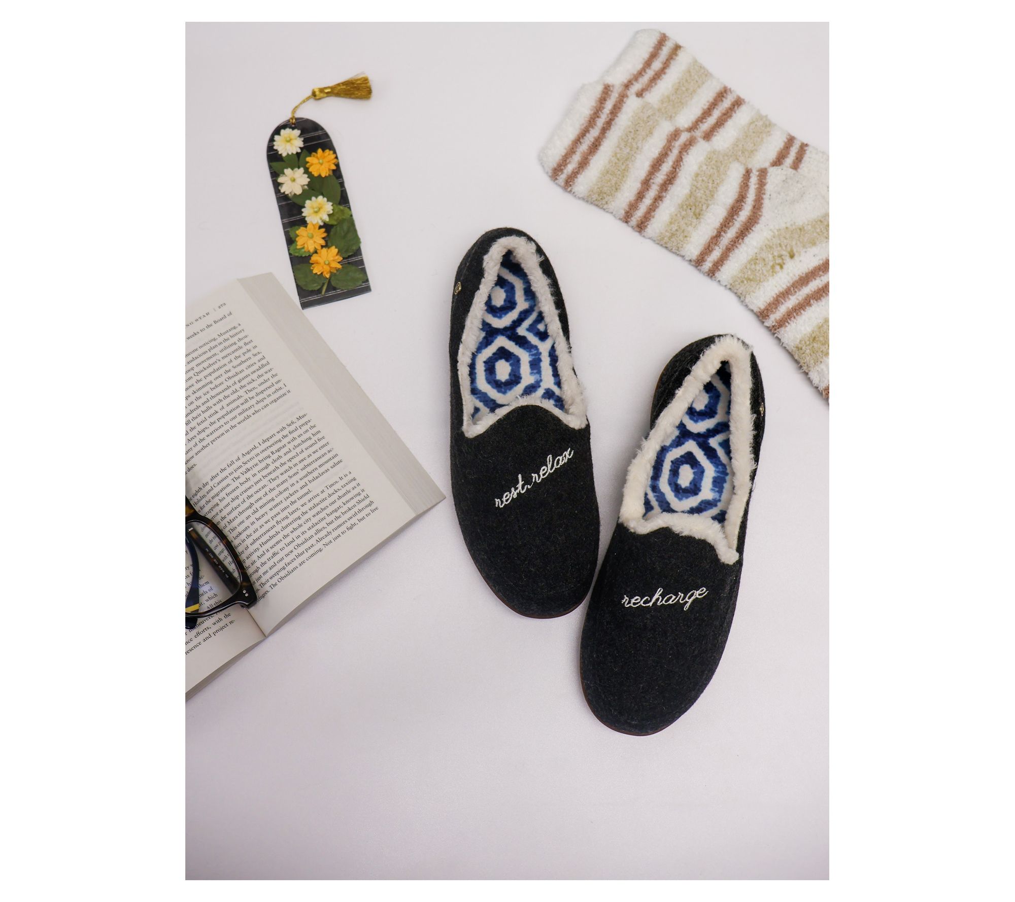 Treat your feet to cozy comfort as you unwind at home in these Dreamy slippers. Plush wool-blended textiles and a soft lining deliver warmth and support, while thoughtful orthotic features and deep heel cupping cradle every step. An inspiring message inside adds a cheerful touch to your downtime. From Spenco.