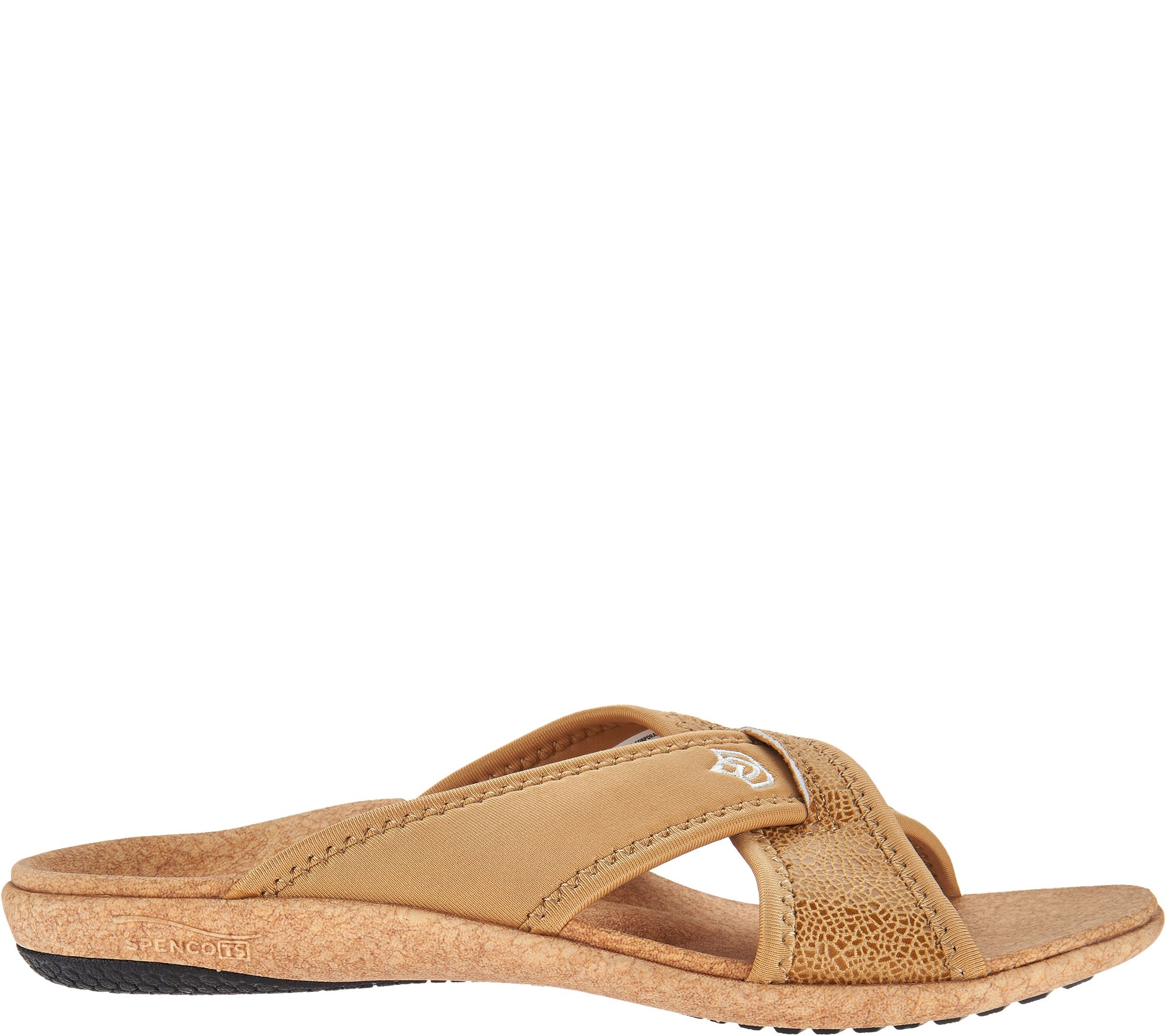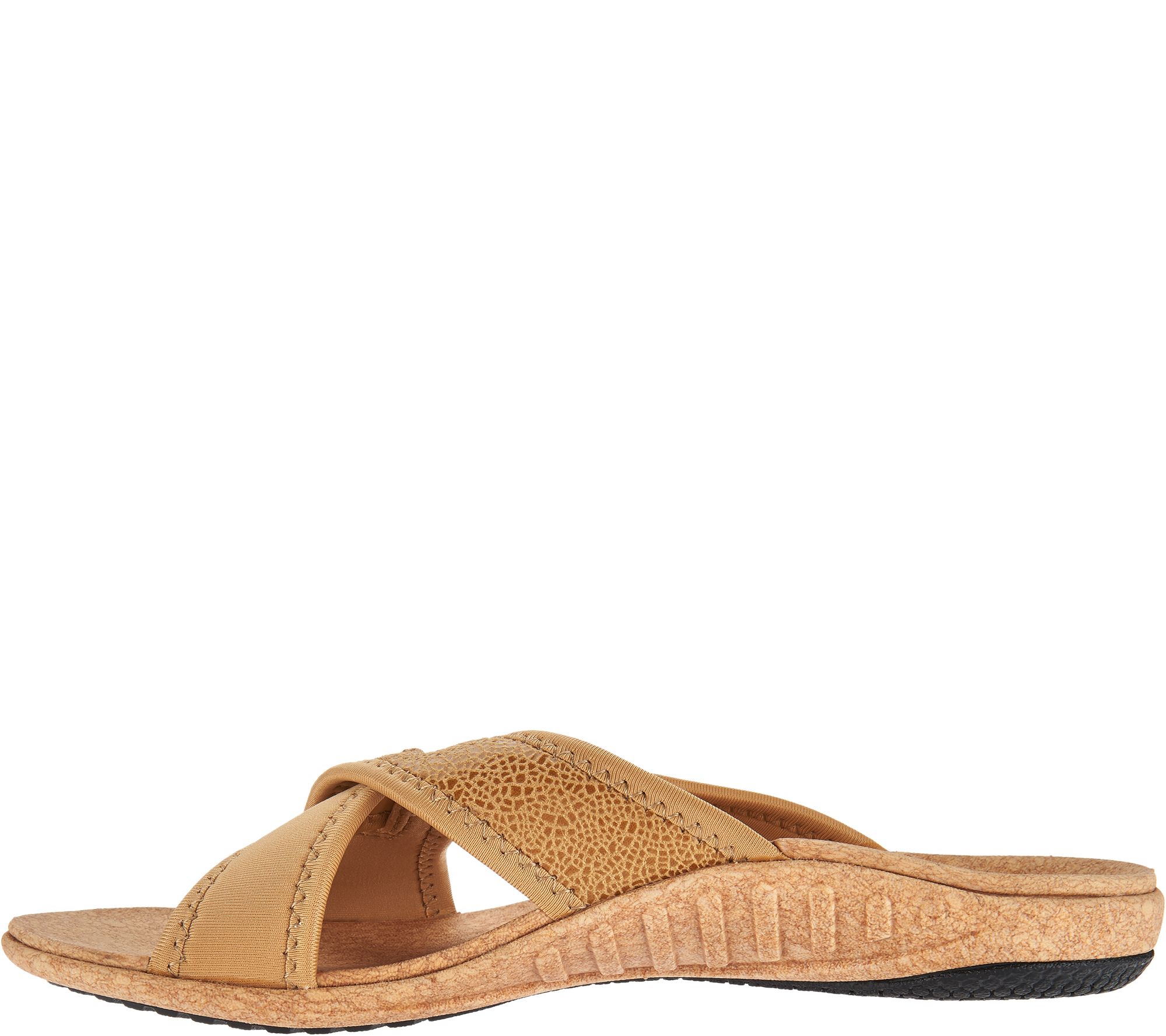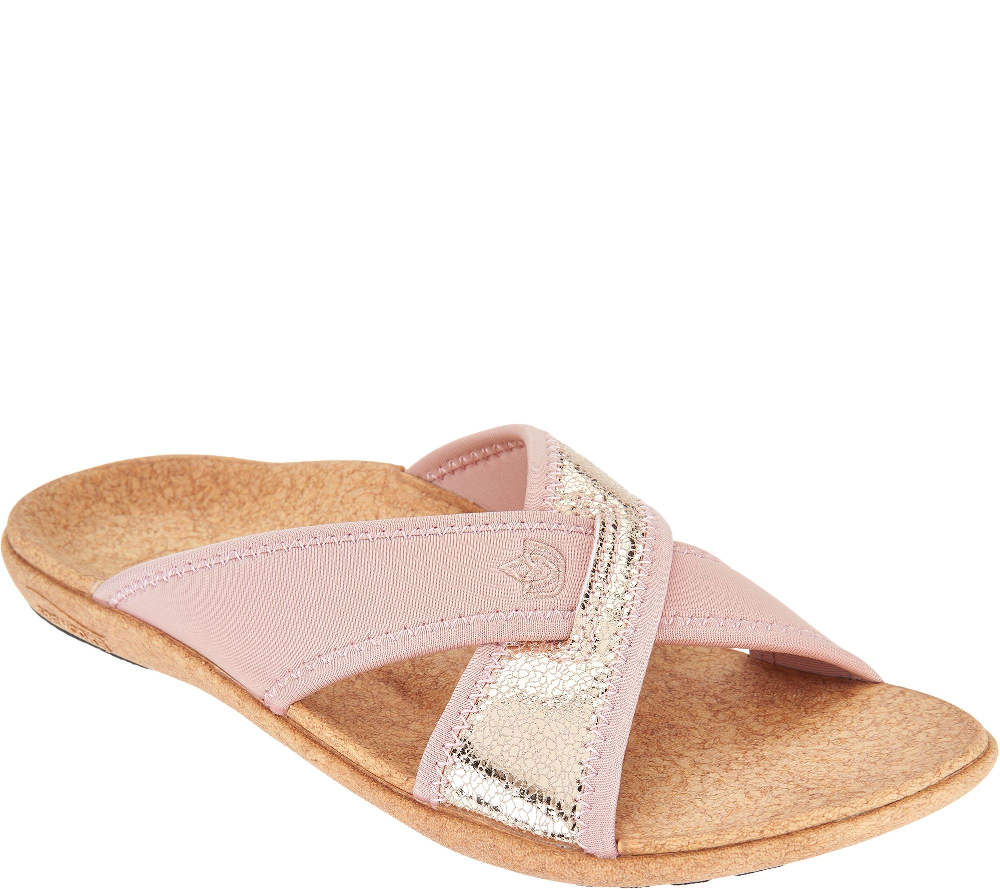 Go-everywhere orthotic slides get even more mileage from an outfit-making metallic print on the comfy neoprene upper. From Spenco.