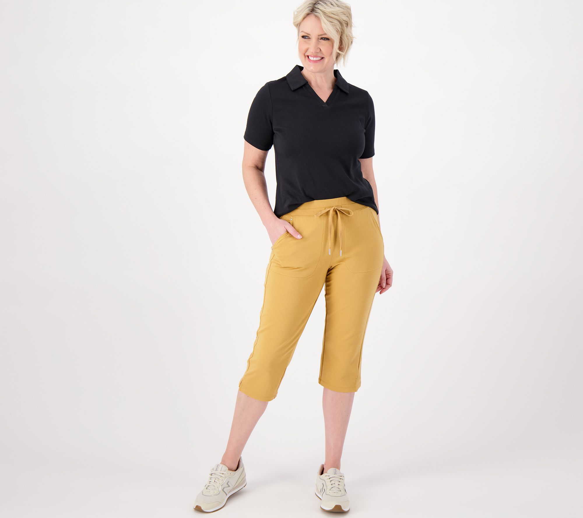 The perfect capri length, a drawstring pull, and... pockets! What more could you want from these go-everywhere pants? Hmmm... how about a cozy French terry feel? You got it! From Sport Savvy.