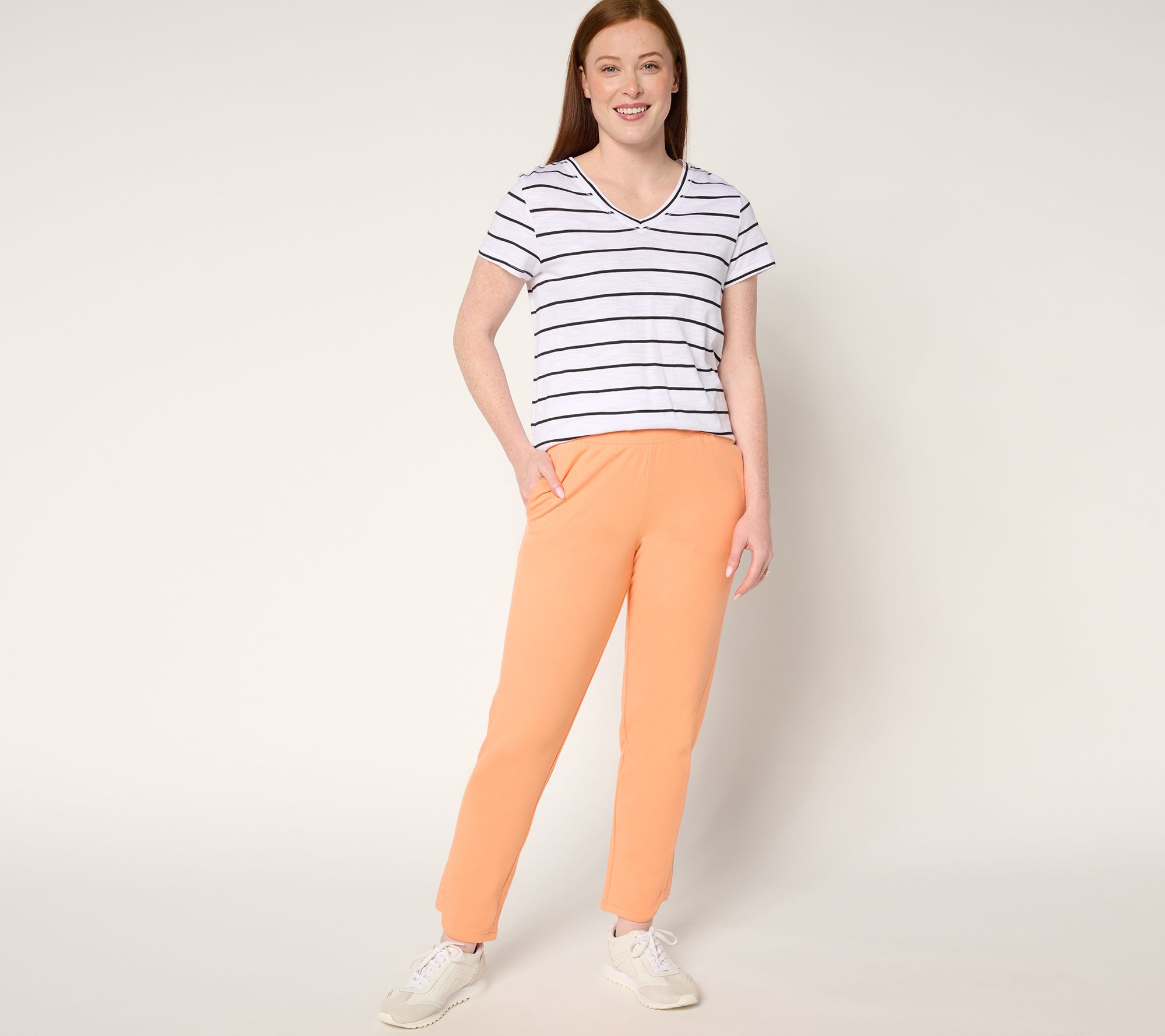 Comfort and style collide in these Sport Savvy pet French terry pants. Perfect for both lounging at home and running errands, these pants feature a unique dolphin hem that adds a touch of flair to your everyday look. With an elasticated waistband and side pockets, these pants ensure both a snug fit and practicality. From Sport Savvy.