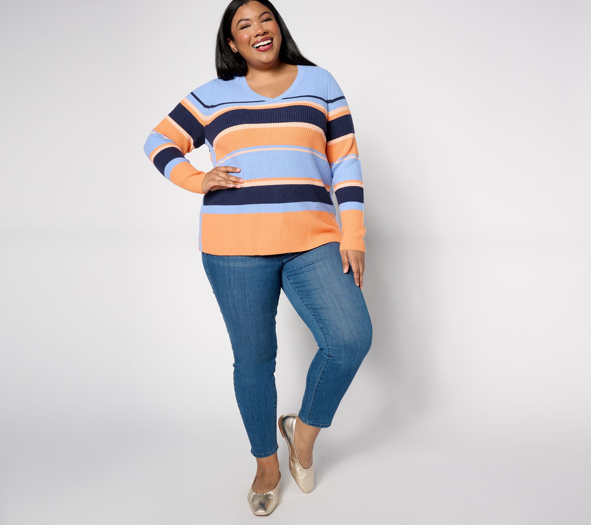 This cute V-neck sweater is extra special with a side seam snap placket. From Sport Savvy.
