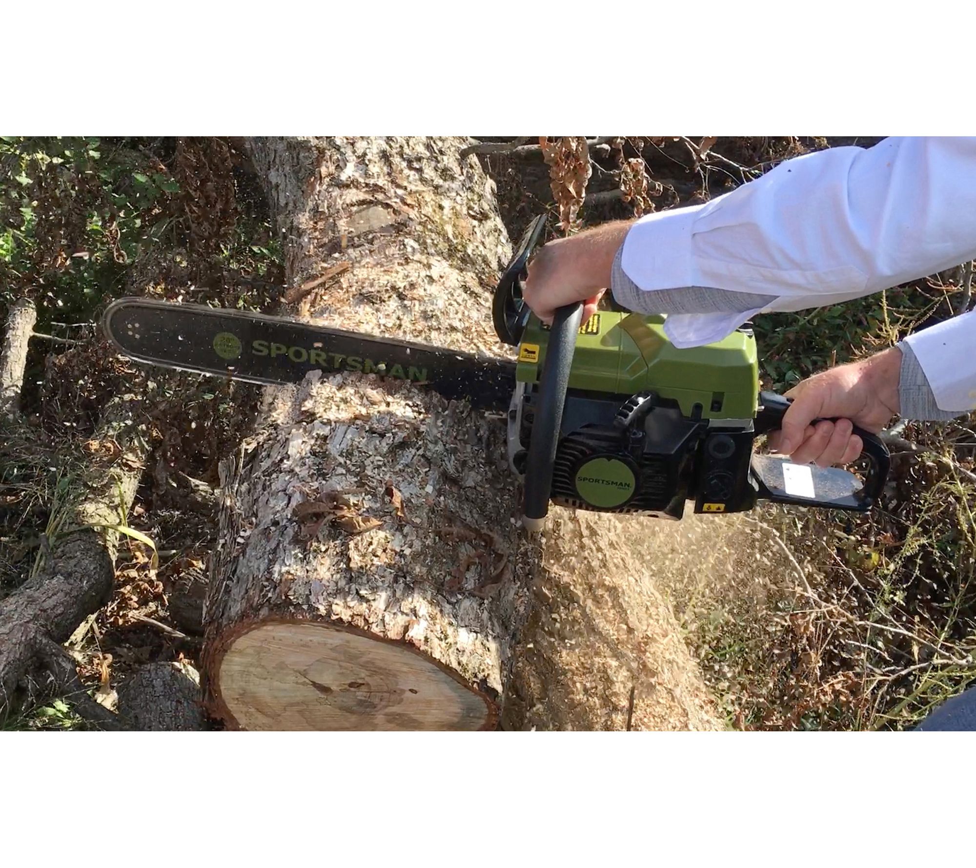 Make quick work of clearing undergrowth, trimming trees, and cutting up firewood with the Sportsman gas two-stroke rear handle chainsaw. From Sportsman.