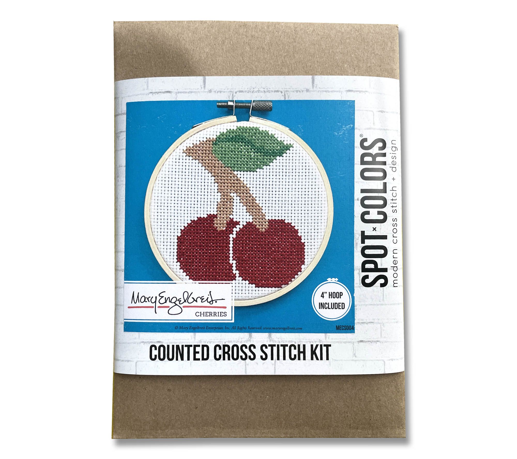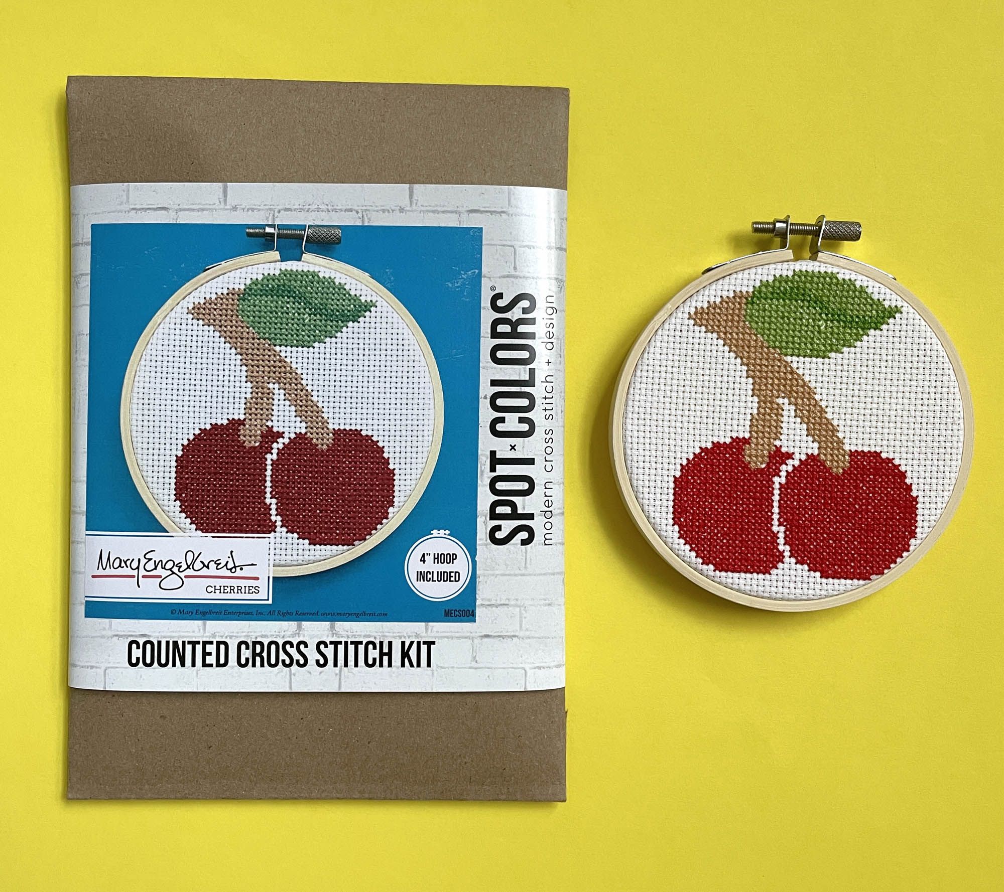 Brighten up your craft time with this Spot Colors Cherries Counted Cross Stitch Kit. This delightful kit includes everything you need for a fun and engaging project, perfect for crafters of all skill levels. Celebrate Mary Engelbreit's charming and luminous designs as you create your own piece of art. Just add scissors and you're ready to start! From Spot Colors.