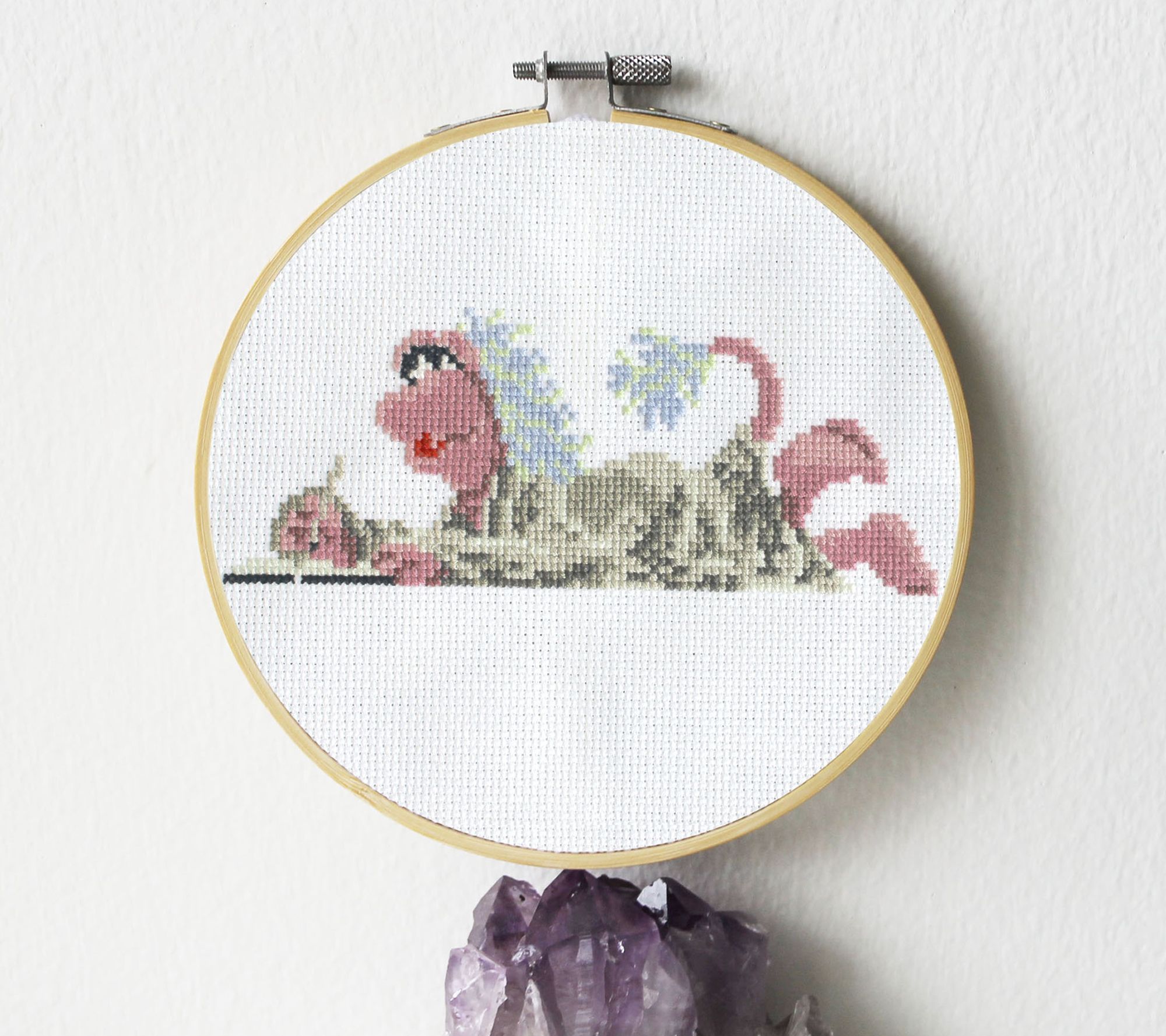 Brighten up your crafting time by stitching your favorite Fraggle Rock friend! This Mokey Fraggle counted cross stitch kit brings a touch of nostalgia and relaxation -- all while you create a vibrant piece of needlework art. Ideal for winding down after a busy day or sharing crafty fun with family. From Spot Colors.