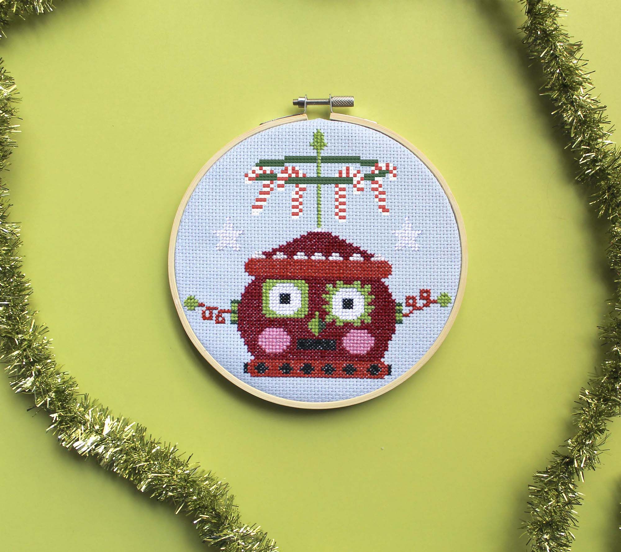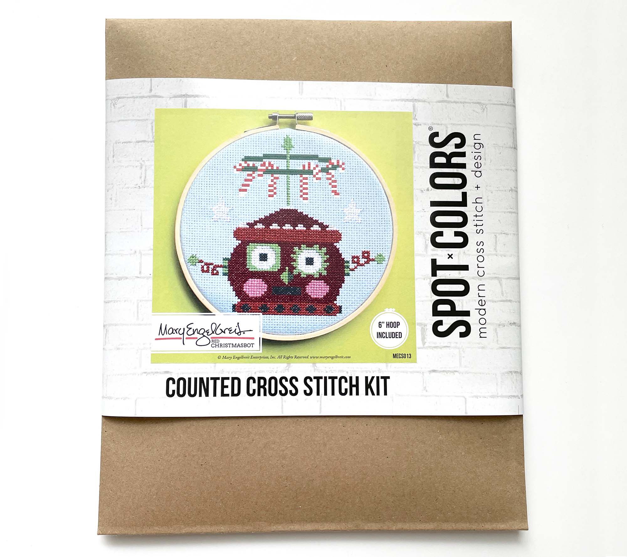 Dive into the festive spirit with this Mary Engelbreit Christmasbot counted cross stitch kit. Perfect for beginners, this DIY set includes everything you need to bring some holiday cheer to your home. Enjoy the luminous colors and ornate designs that capture hearts everywhere. Just add scissors, and you're all set! From Spot Colors.