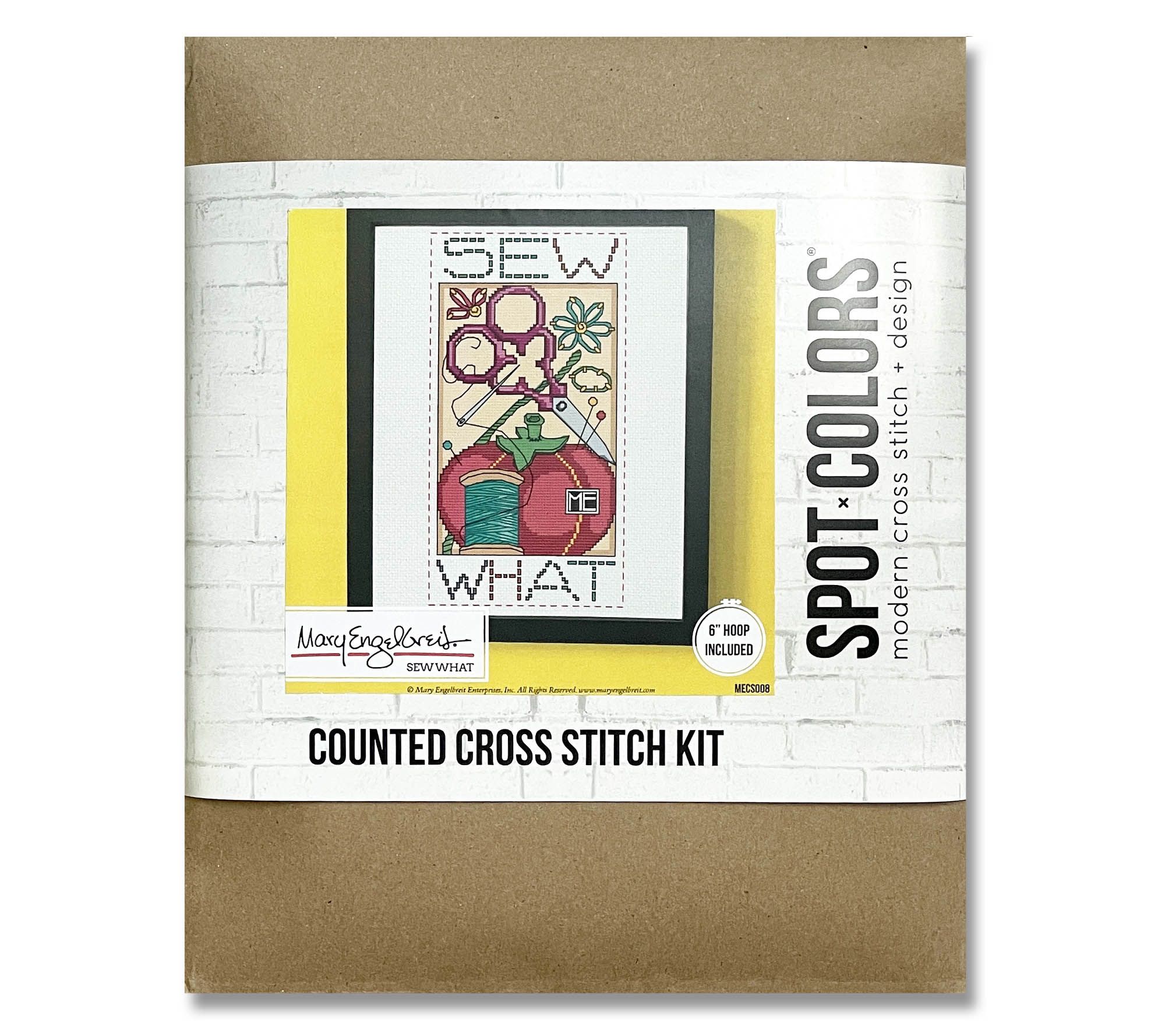 Immerse yourself in the charming world of needlework with the Sew What Counted Cross Stitch Kit. Whether you're an intermediate stitcher or a seasoned expert, you'll find joy in creating Mary Engelbreit's delightful designs. This complete kit provides all the essentials you need to stitch your way to a beautiful piece of art. From Spot Colors.