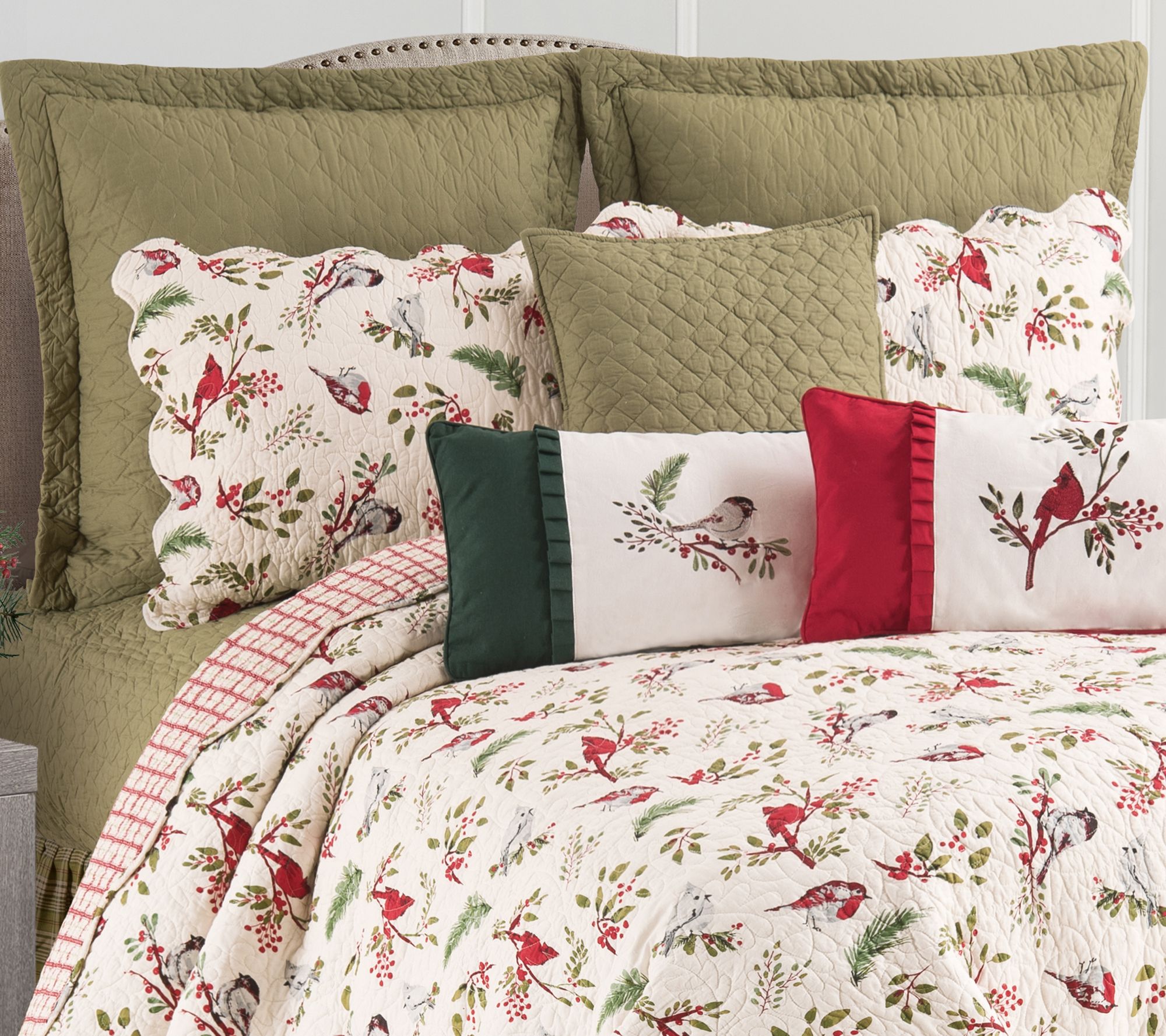 If you find your bedding is boring, make it more appealing with the simple addition of this Sprig Birds quilt set. Ahhh, that's better. From the Valerie Parr Hill Collection.
