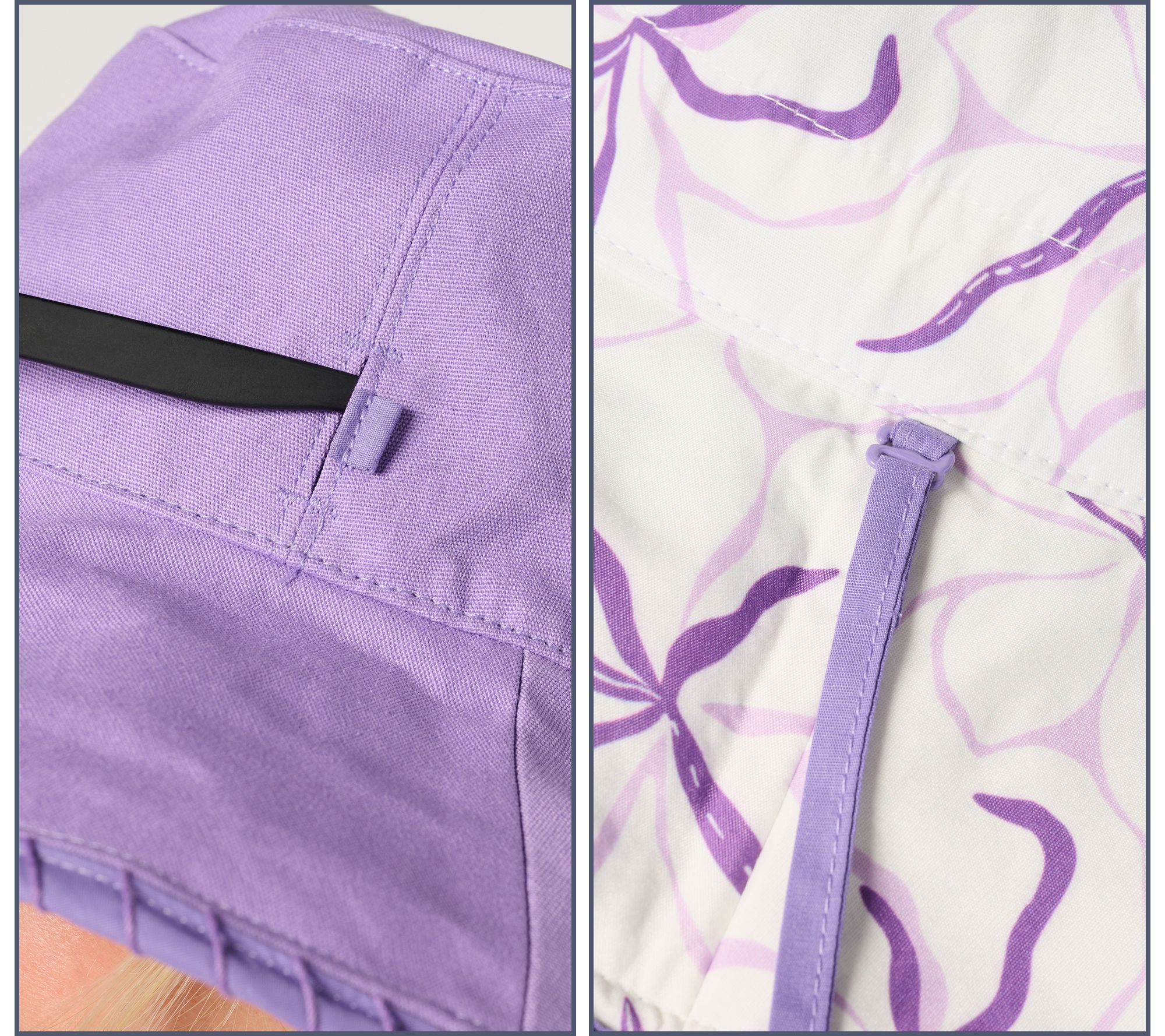 Features: reversible, whipstitch detailing, sunglass slits with silicone grip, adjustable pull tie