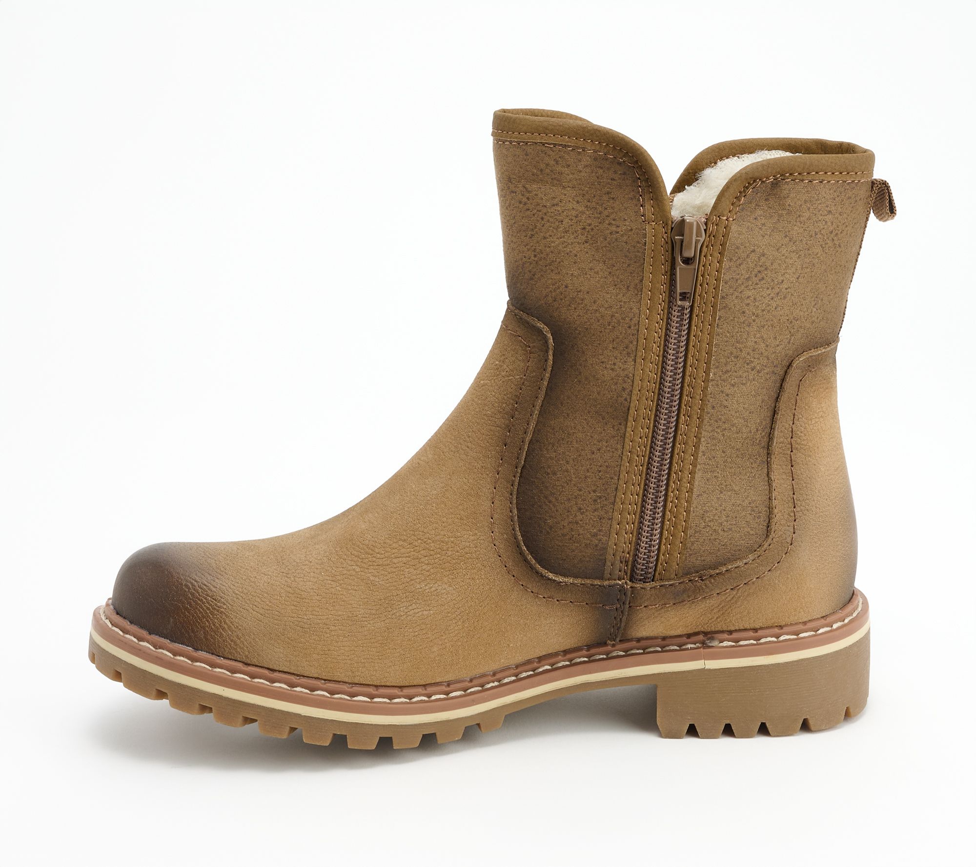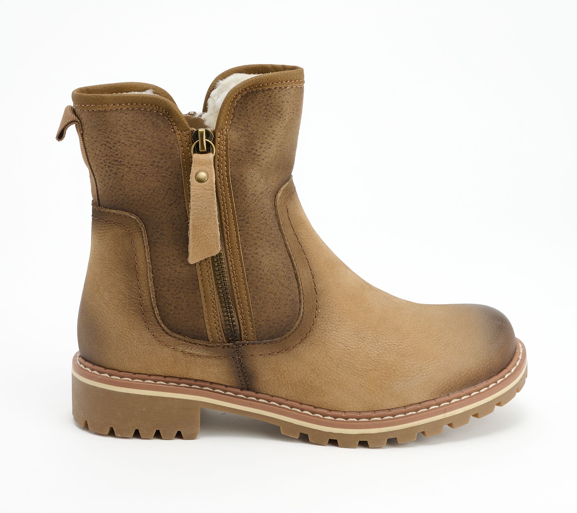 These cozy faux-fur lined ankle boots are stylish and comfortable, making them the ideal choice on chilly days. From Spring Step.