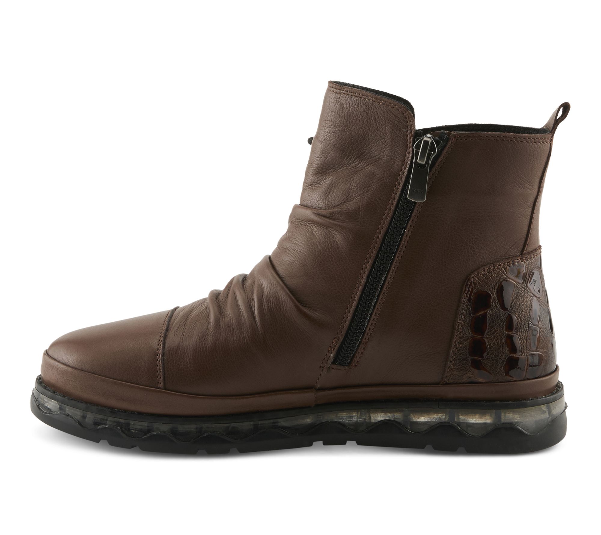 A stroll through downtown or a weekend getaway feels special when you slip into these leather booties. Supple leather, elegant ruching, and crocodile-embossed details deliver head-turning sophistication, while the cushioned arch support and flexible sole keep feet happy through long lunches and evening strolls. From Spring Step.