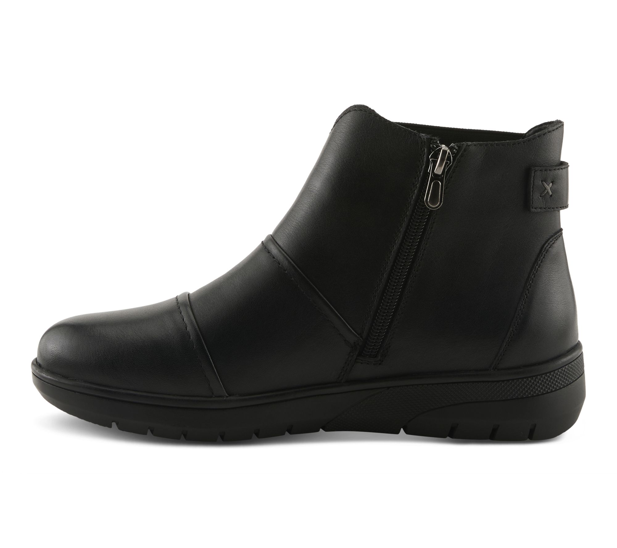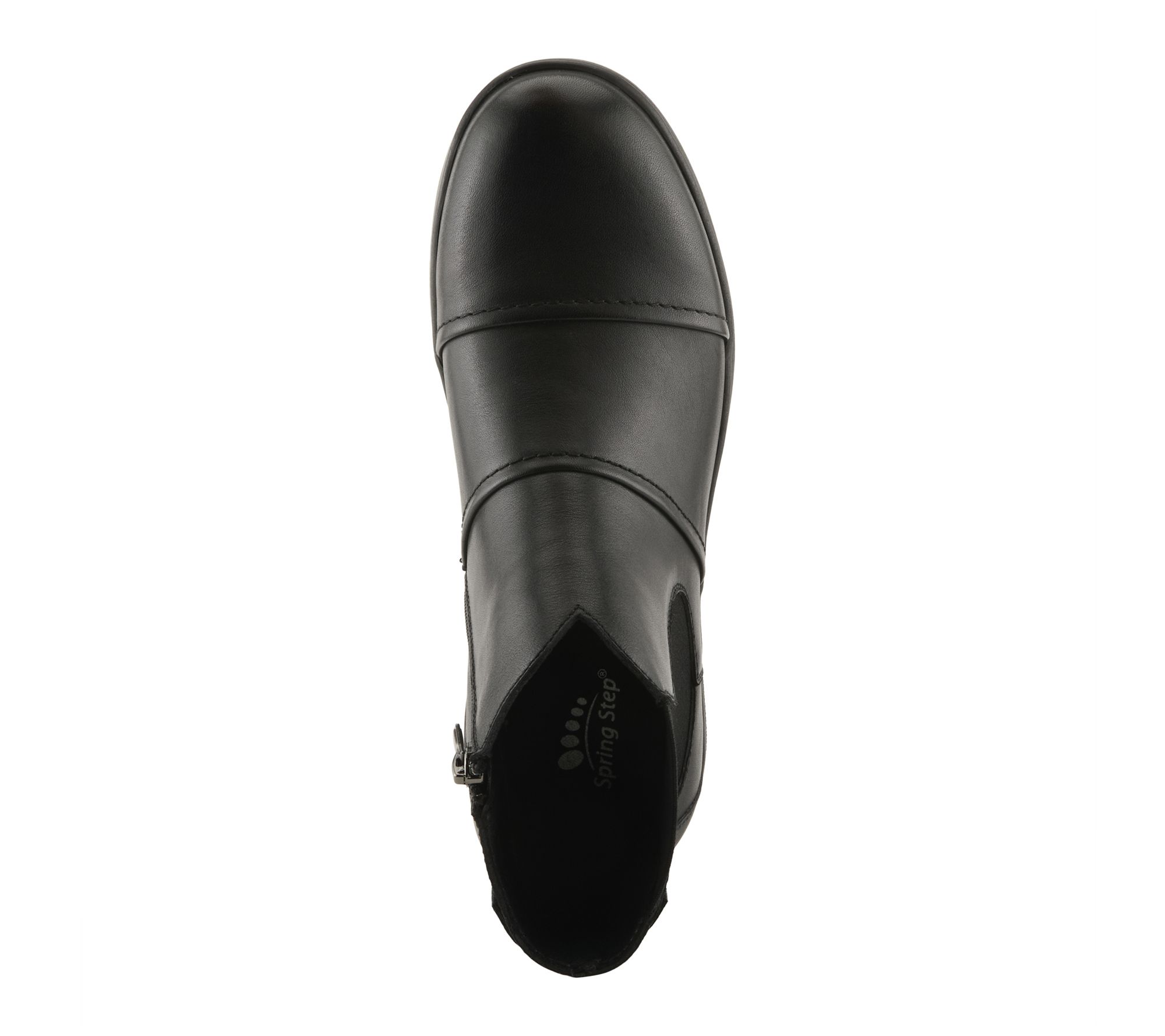 • Rounded toe, stitching detail, side goring panels, side zipper closure for easy on and off