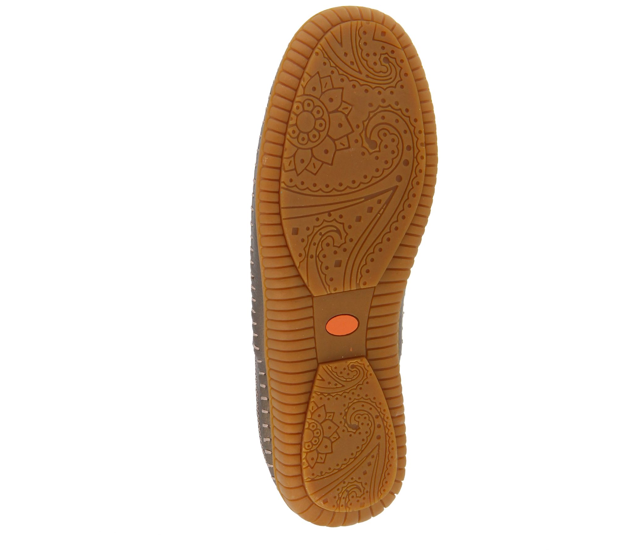 • Floral laser cutouts on upper, split vamp, tonal stitching