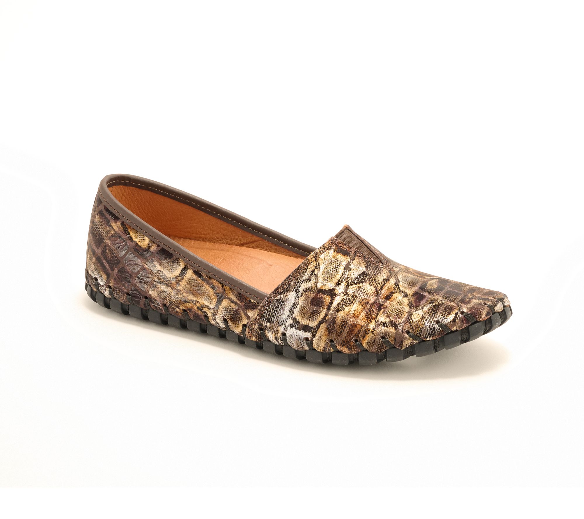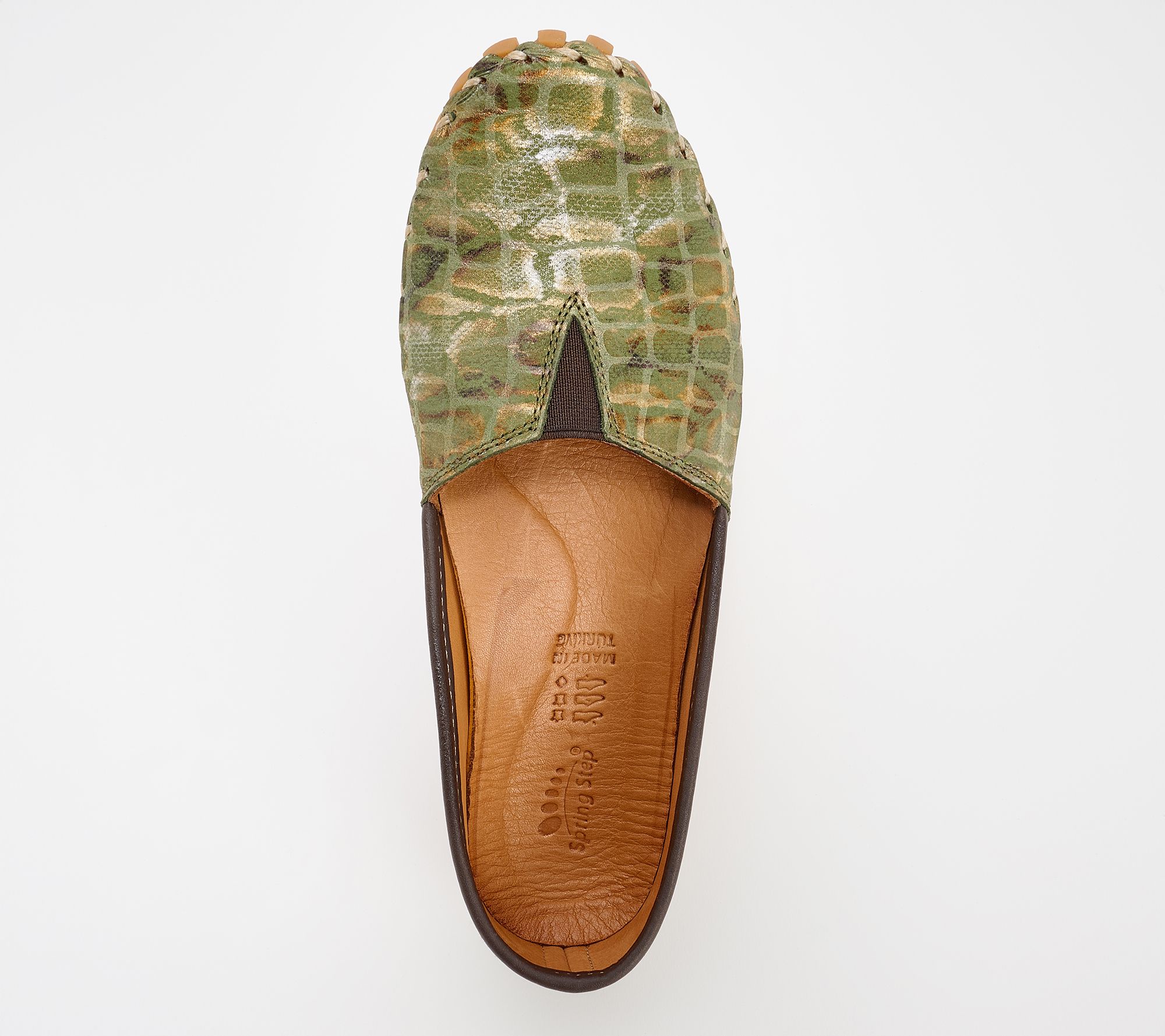 Fashionistas crave comfort, too! That's why these leather flats from Spring Step are always at the front of their footwear collection. Crafted with a delicate croco pattern and accented by a subtle metallic sheen, these effortless everyday shoes exemplify how you can simultaneously feel good and look fab. From Spring Step.