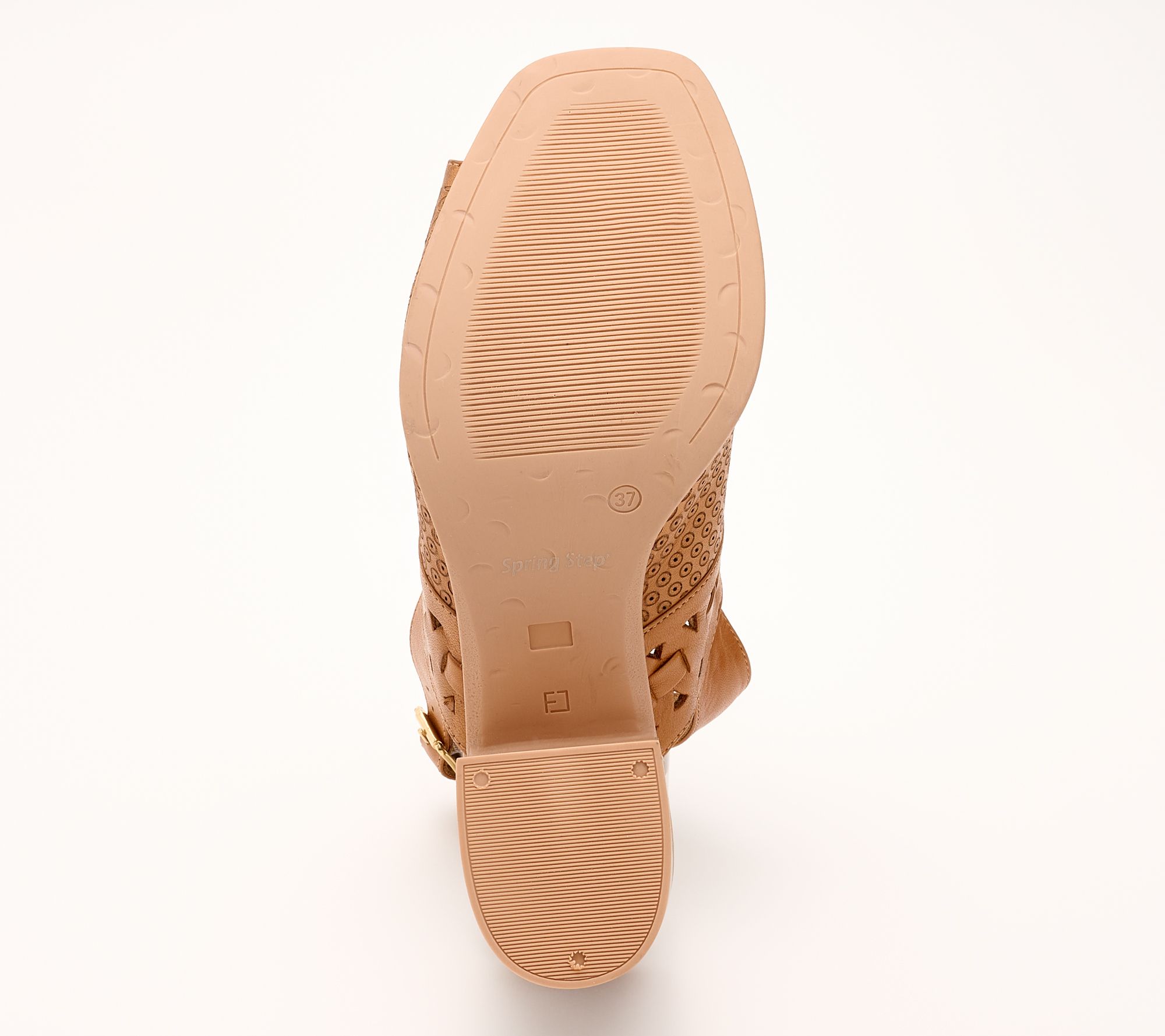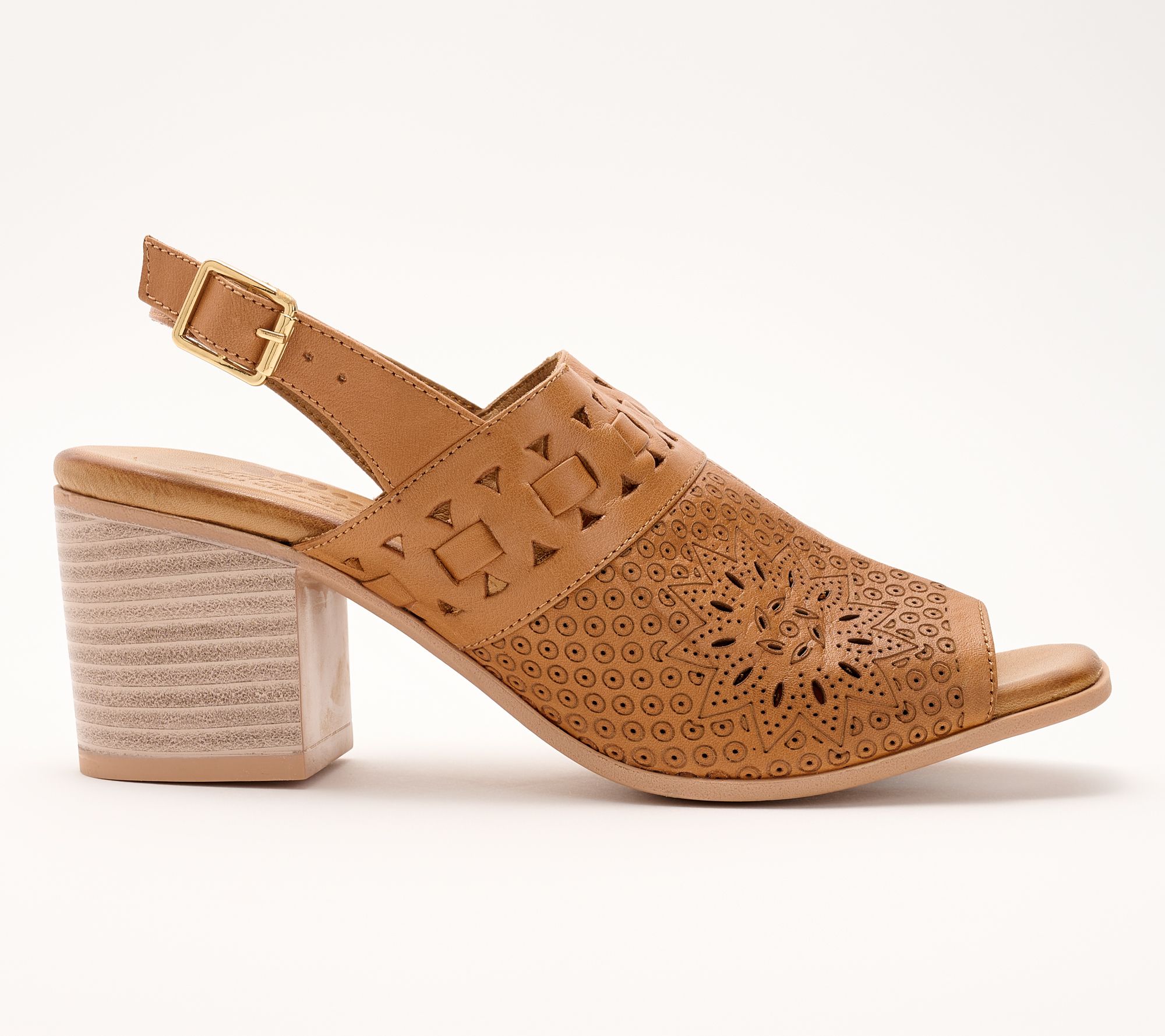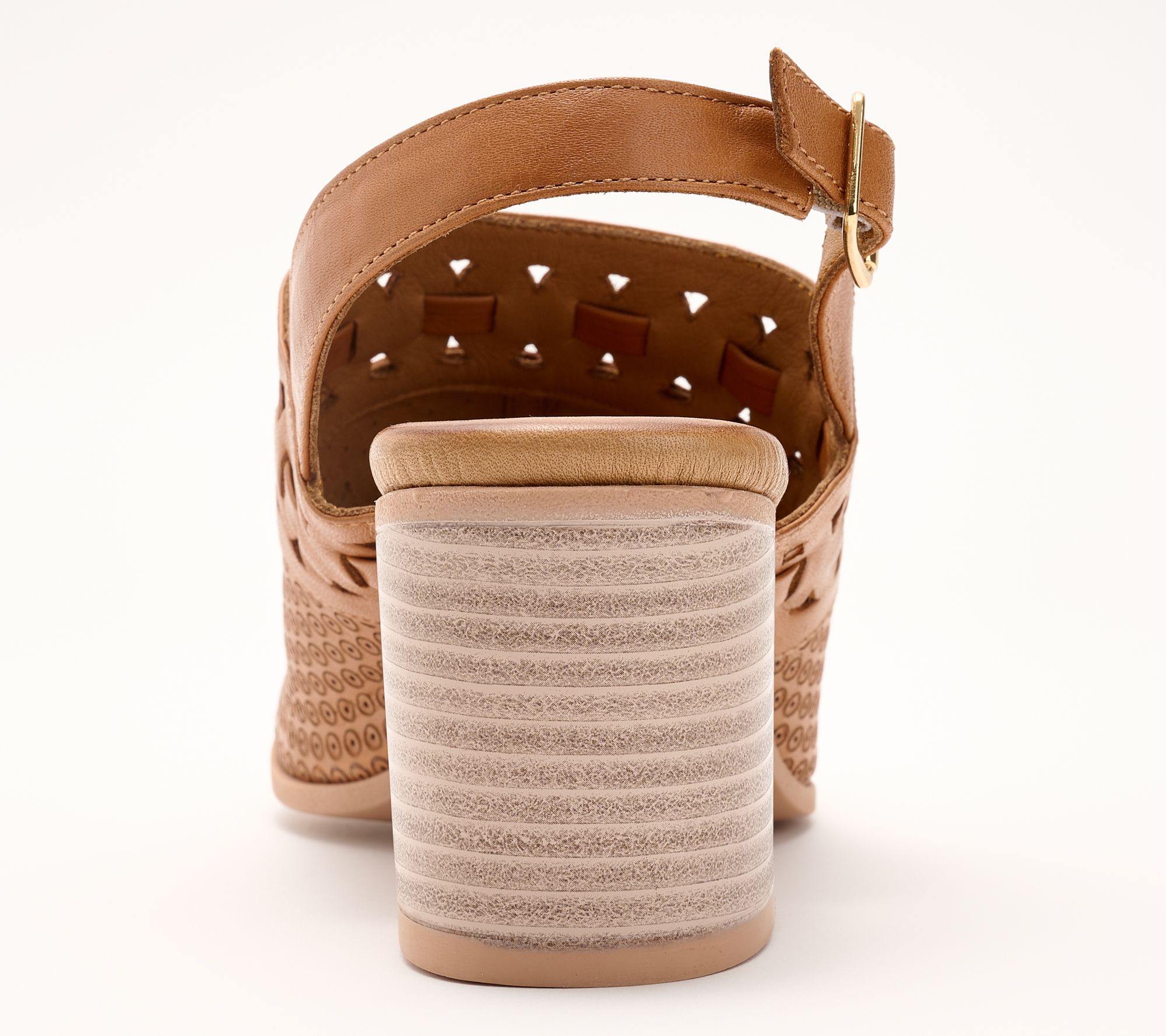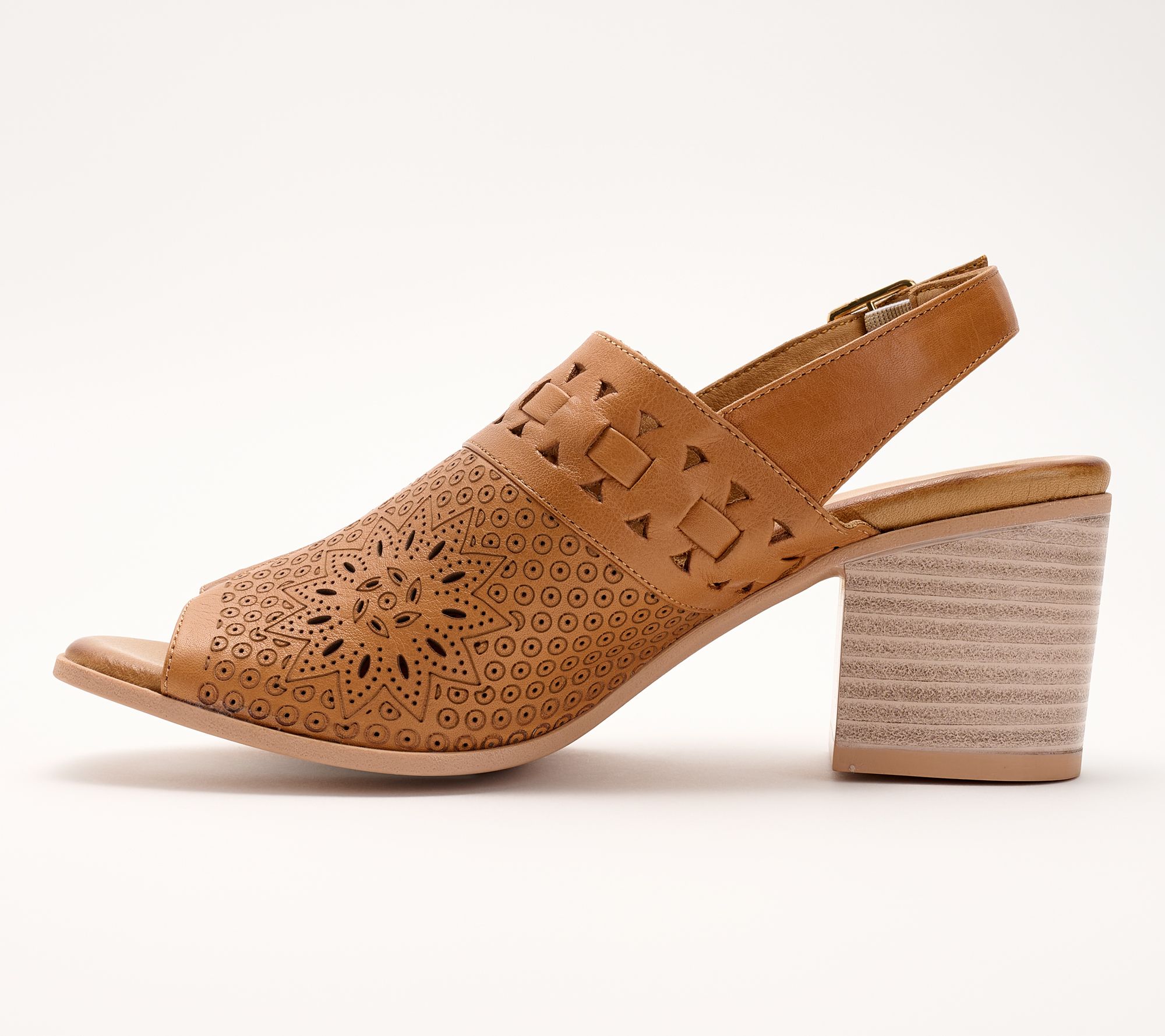 Spring Step Leather Perforated Heeled Sandals - Sunela