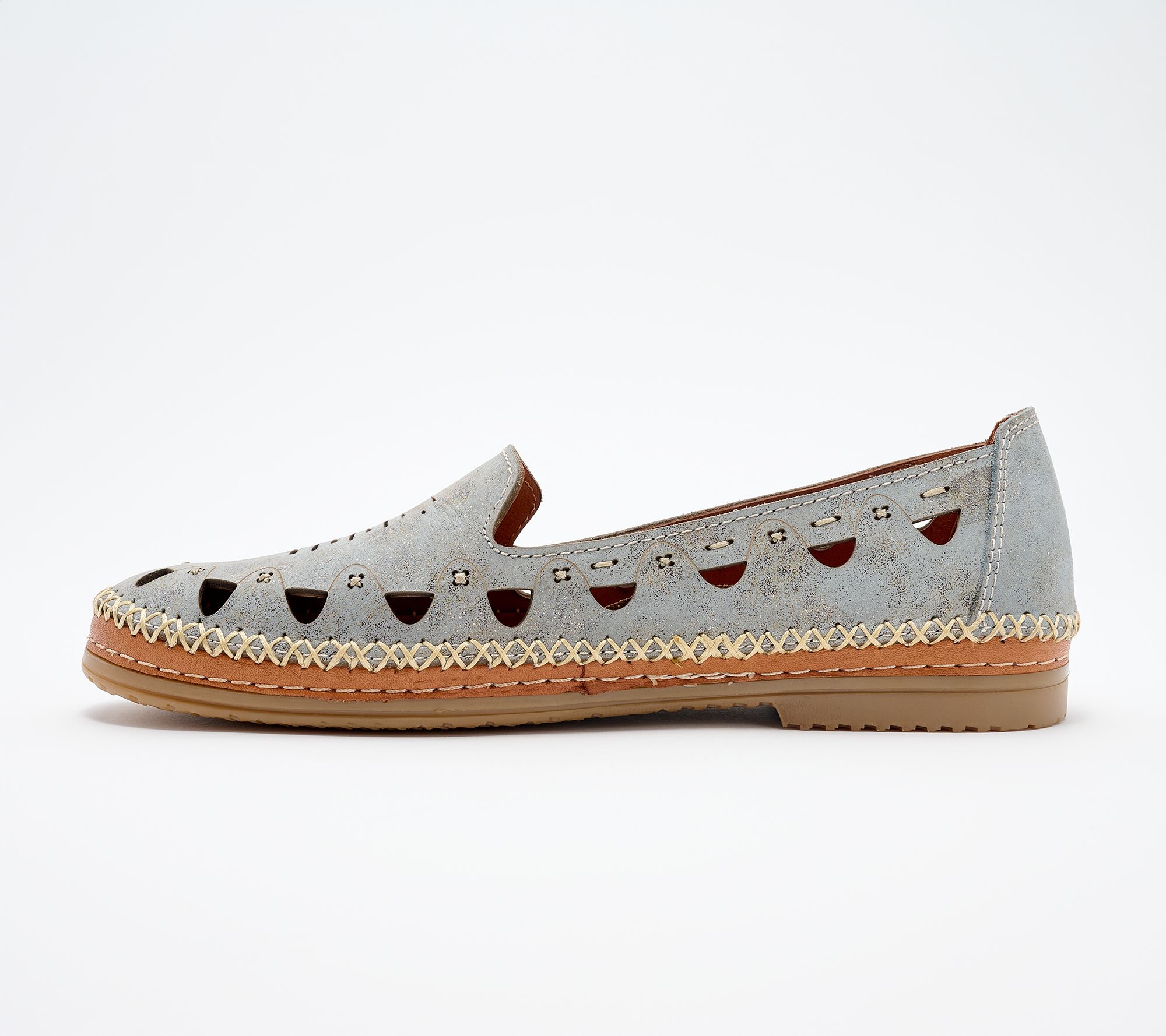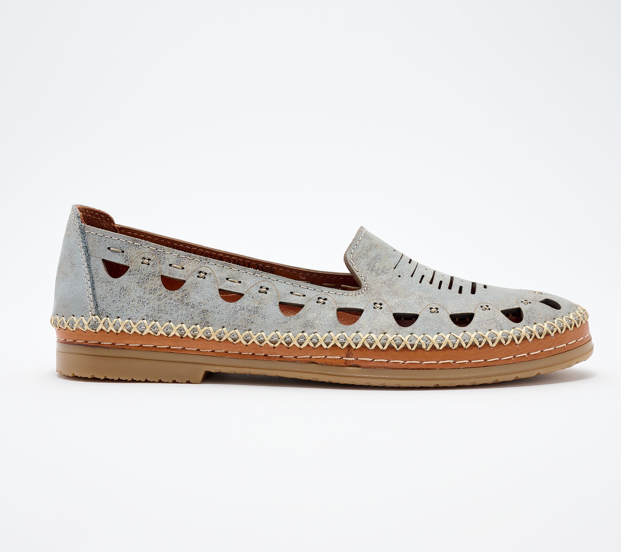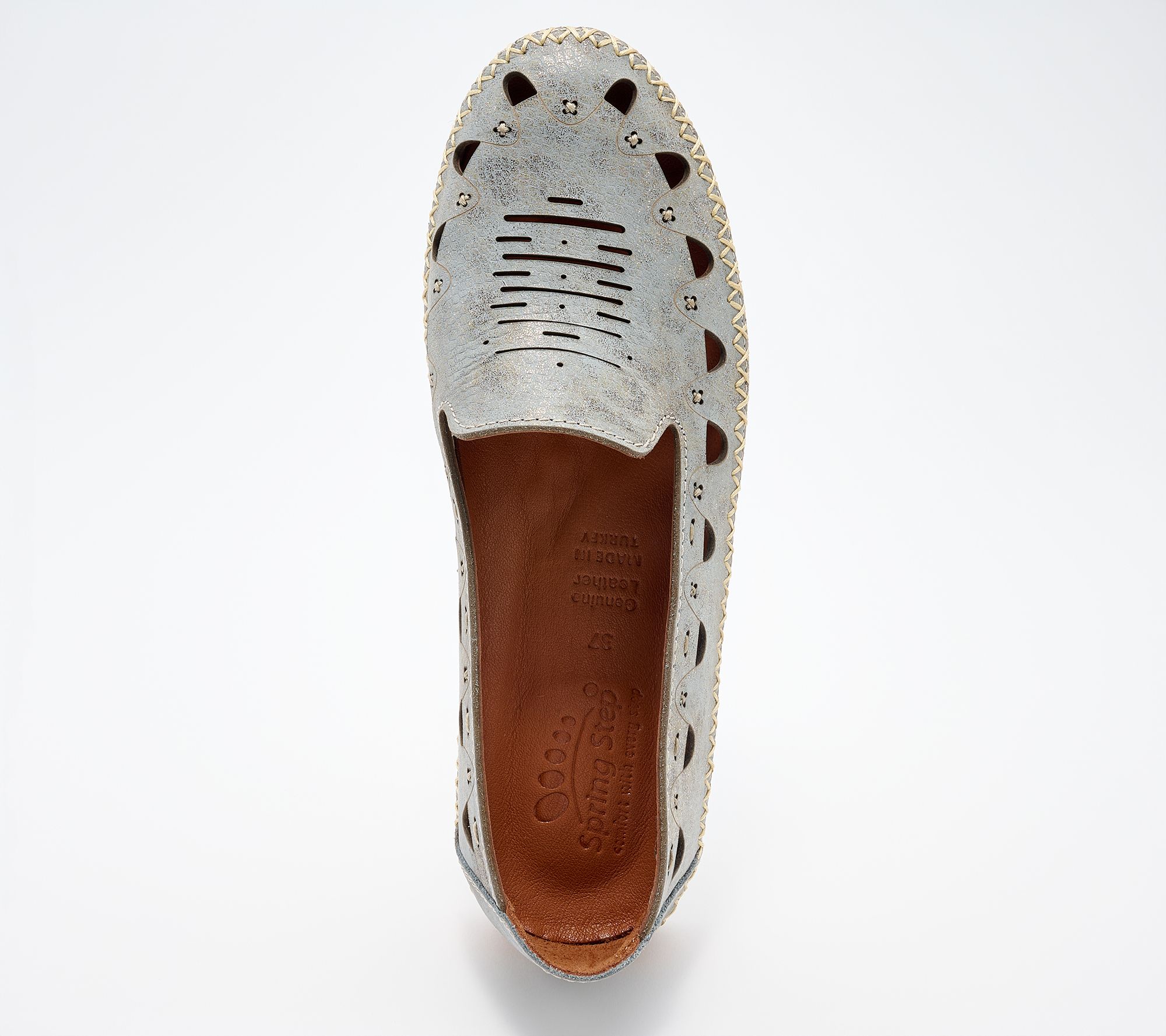 Whether you're meeting friends for coffee or heading to the weekend farmer's market, these leather perforated slip-ons add a subtle shimmer to your every step. Featuring soft laser-cut details and a comfortable leather-lined insole, their lightweight design lets you move easily from one plan to the next. From Spring Step.