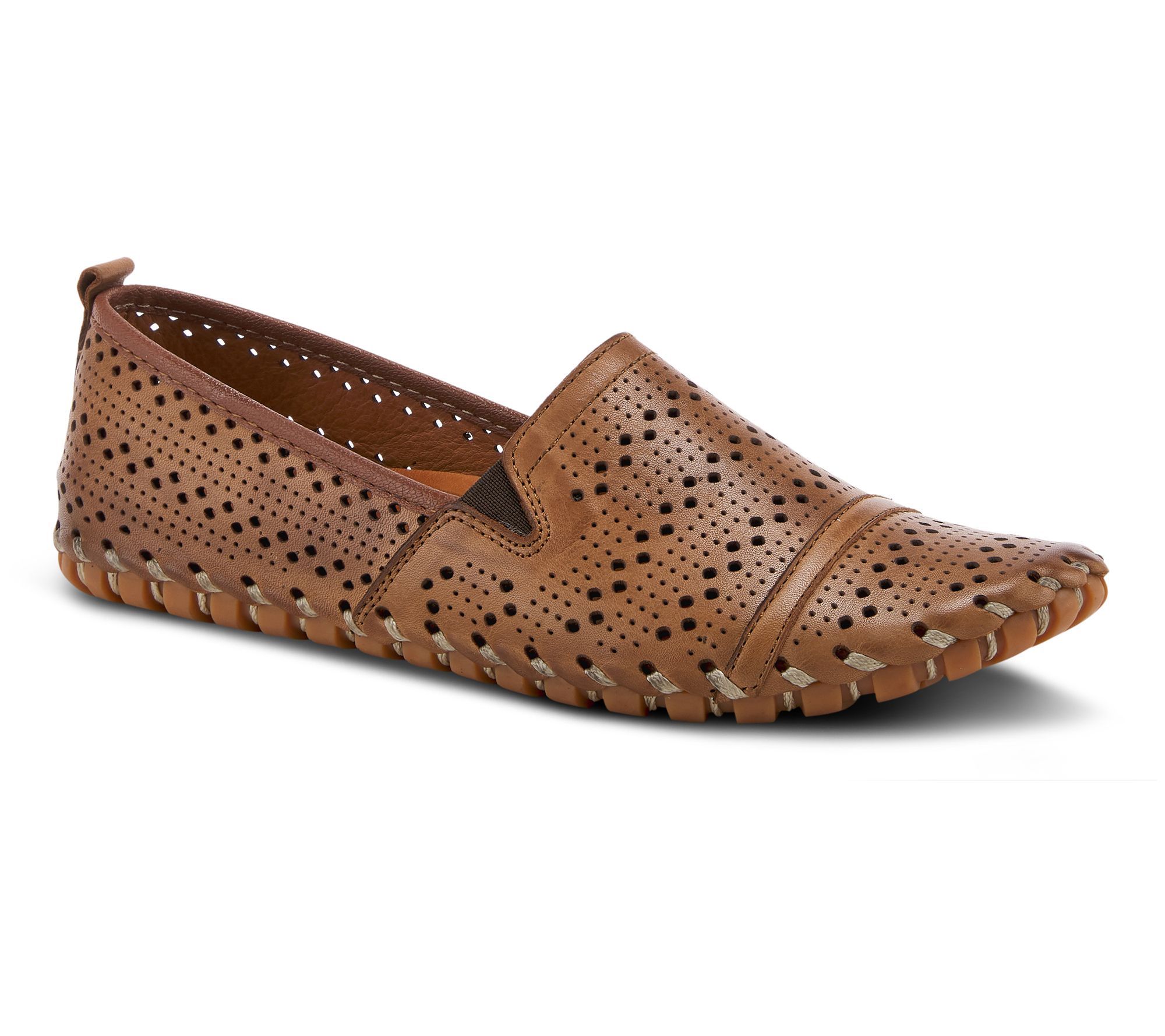 Embrace comfort and style with the Fredia slip-on, a perfect blend of European influence and modern design. These leather loafers feature geometric cutouts and etching, enhanced by stretch elastic goring for a relaxed fit, all set atop a lightweight, flexible rubber outsole. Ideal for any season, they offer a unique combination of artisan craftsmanship and practicality. From Spring Step.