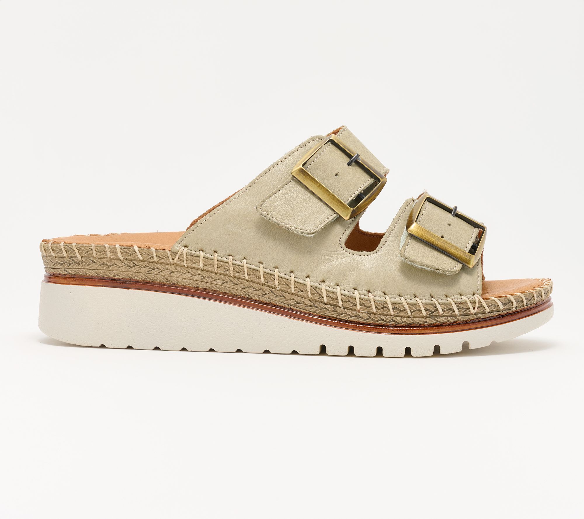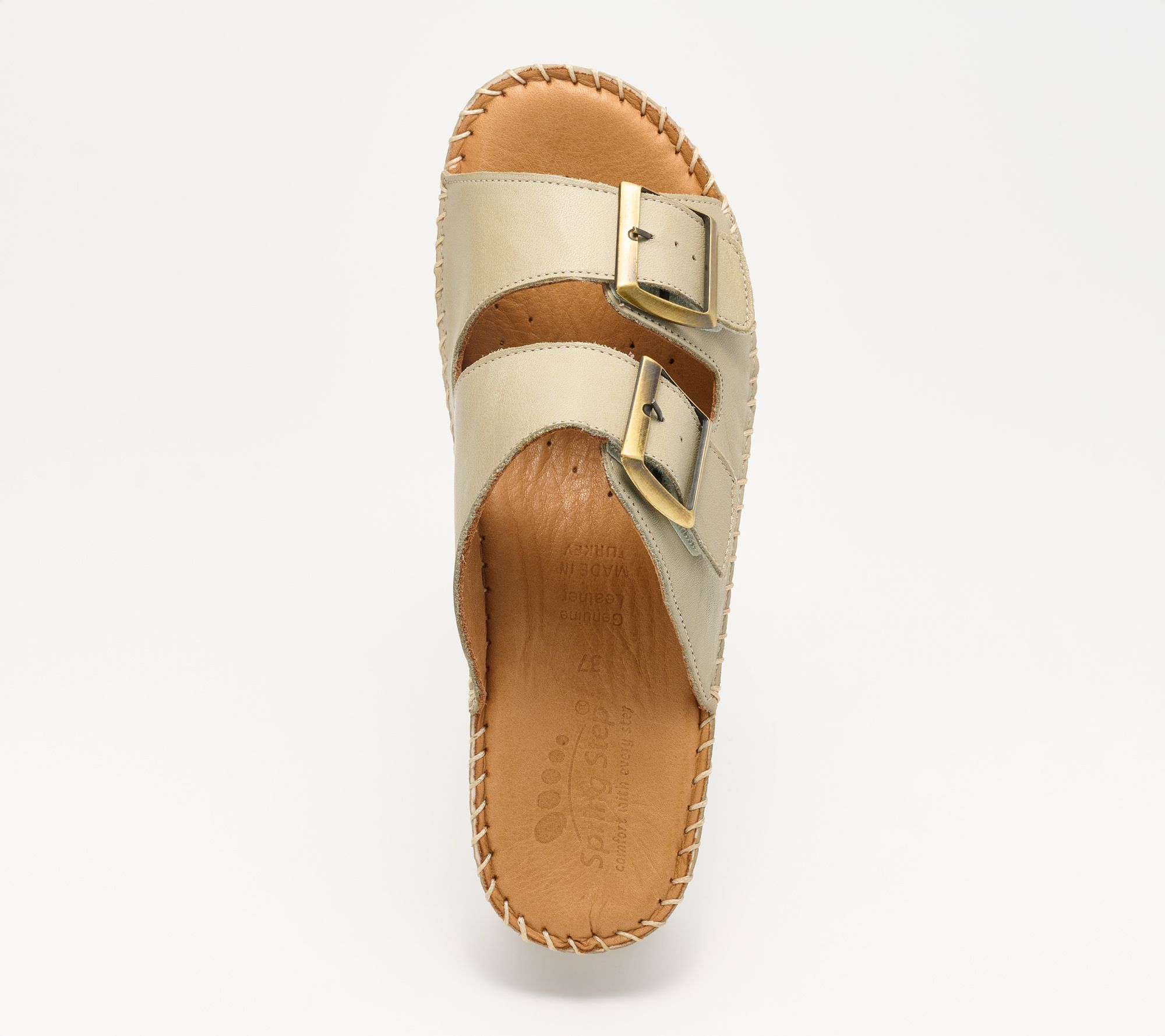 Spring Step Leather Two-Strap Slide Sandals - Minisia