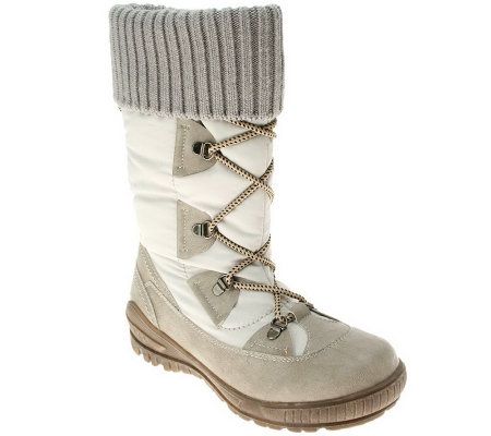 Baby, it's cold outside...but your feet are oh-so-warm and cozy in these waterproof boots! The sweater-style cuff at the top of the boot keeps warmth in and snow out, while a rubber sole offers essential traction in wintry weather. From Spring Step.