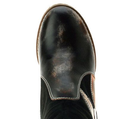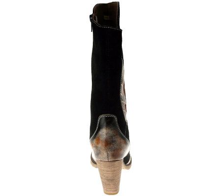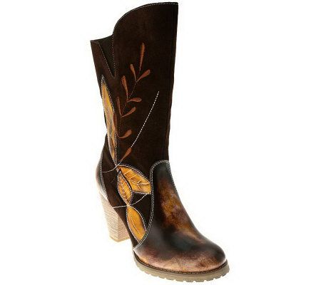 As the season for cool-weather style approaches, these boots are prepared to do their fashion duty! The soft suede shaft is appealingly accented with a leather toe and heel, along with applique leaf patterns of stitchwork and leather. And, they slip on and off easily, thanks to a full-length side zipper. From Spring Step.