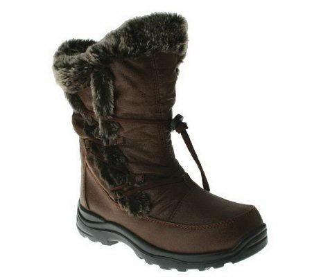 Brave the elements in these winsome winter boots. The waterproof upper keeps feet dry, while faux fur lining warms them up. Faux fur piping on both sides of the boot spices up the exterior style. From Spring Step.