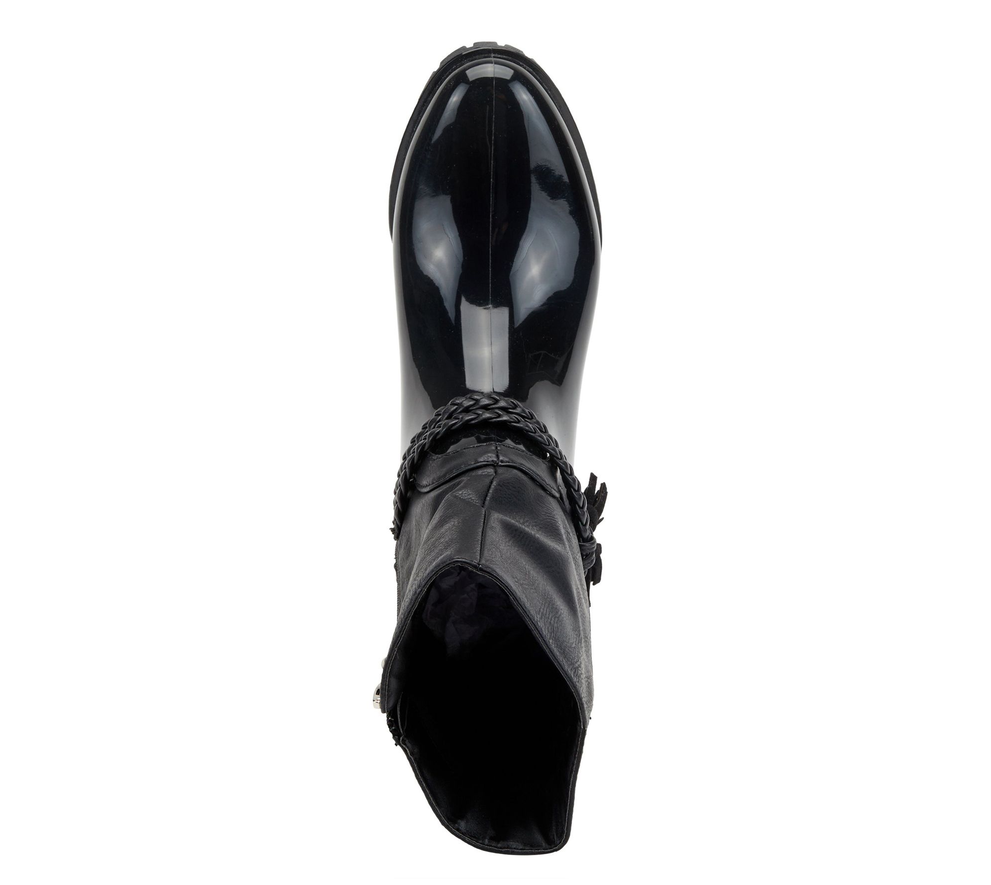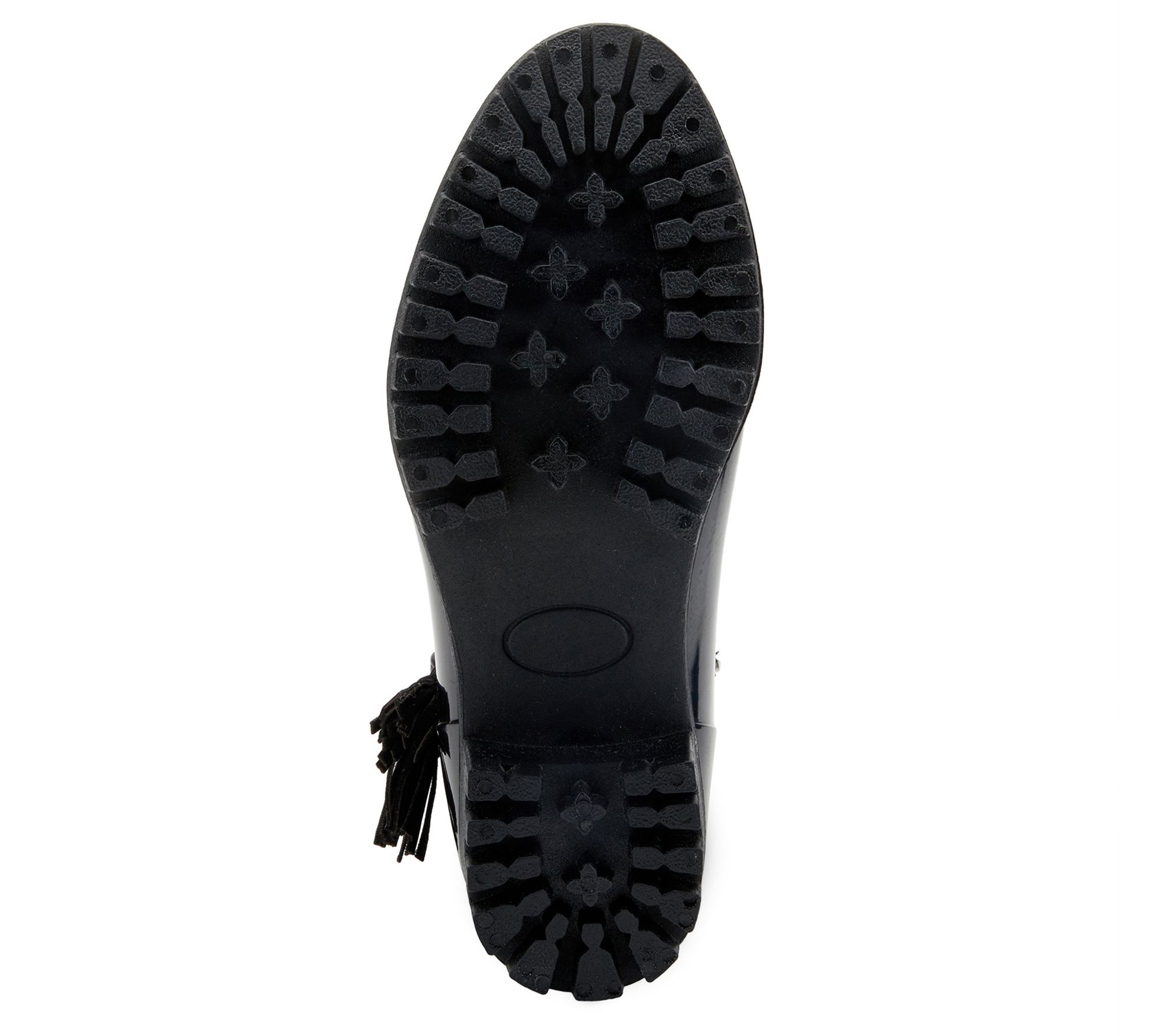 • Almond toe, 3/4-length inner zipper, metal hardware, waterproof, braided ankle straps, soft tassels