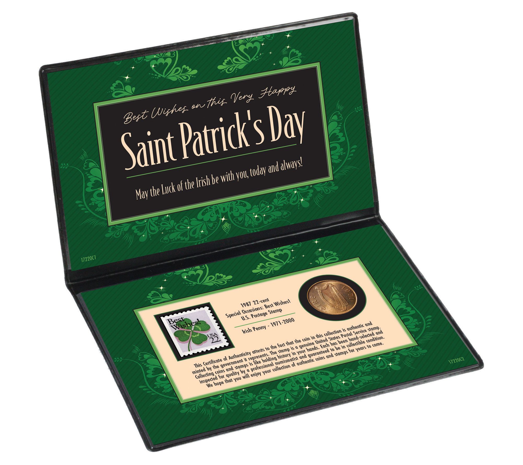 St. Patrick's Day Coin and Stamp Collectible Gr eeting Card