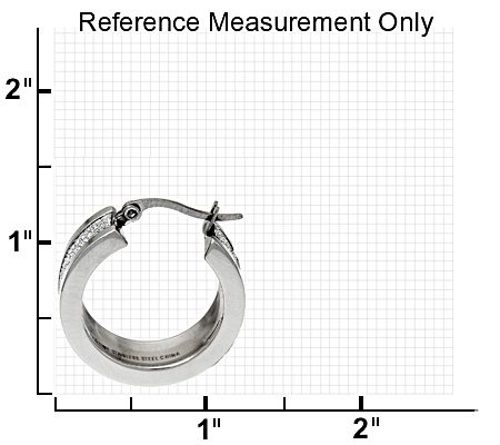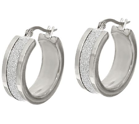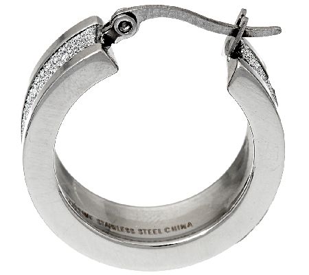 As good as it glitz. Up your hoop game in stainless steel glitter hoop earrings from Steel by Design. These chic showstoppers have a shimmering glitter center bordered by polished, raised edges. The result is an elegant earring that catches the light--along with plenty of admiring glances. From Steel by Design(R) Jewelry.
