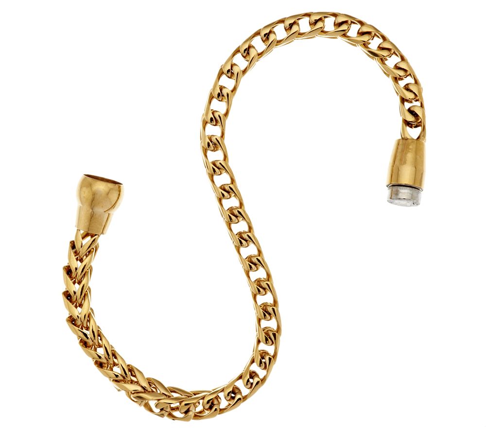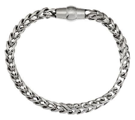 A square chain in a bold design. This highly polished, square wheat chain makes a style statement all on its own. And, with a polished magnetic clasp, it's one statement you can easily make. From Steel by Design(R) Jewelry.