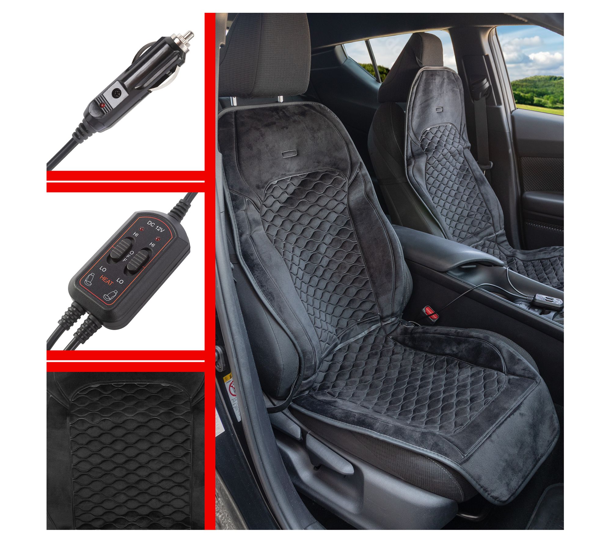 Stalwart 2 Heated Seat Covers for Cars Universal 12V