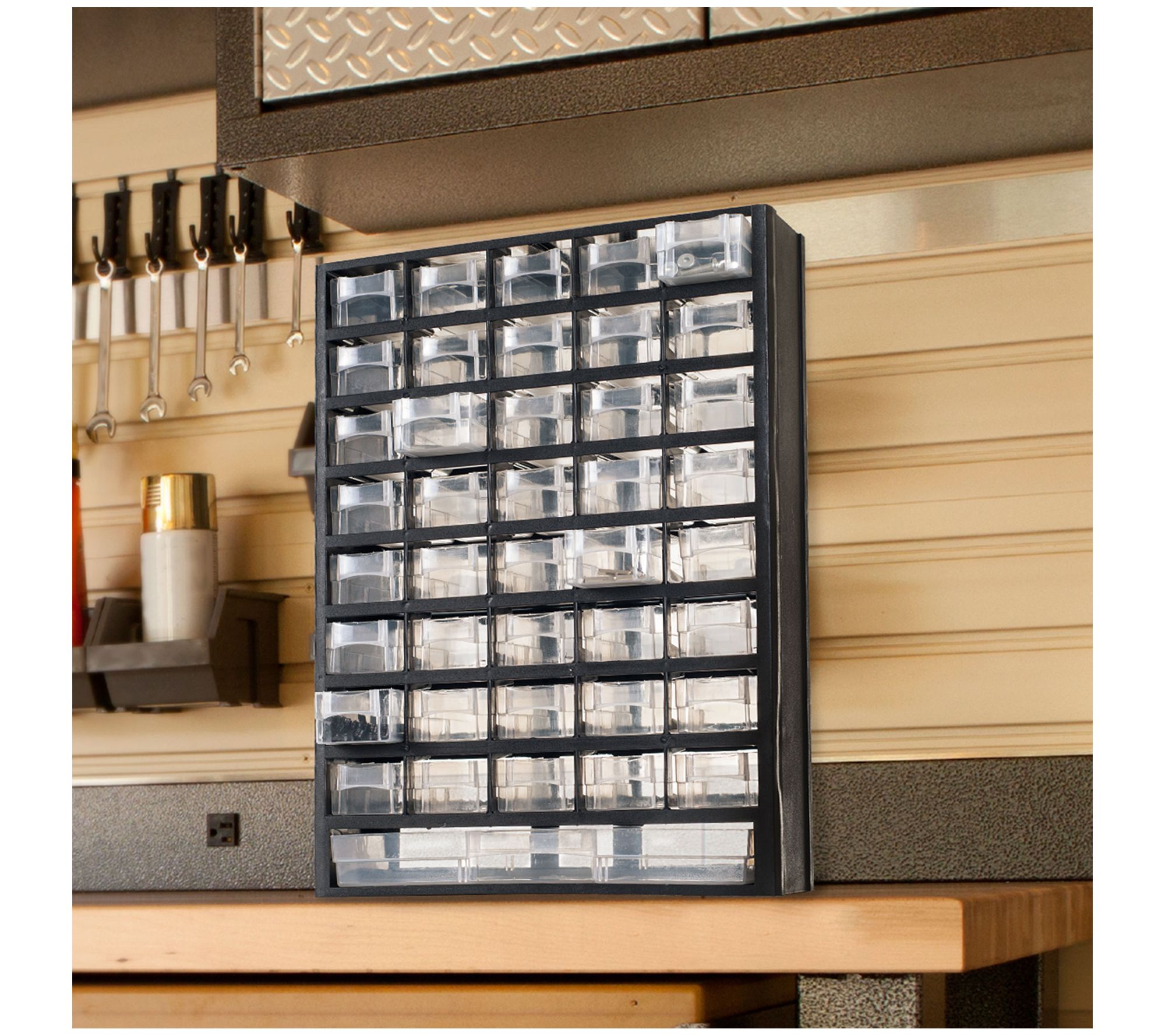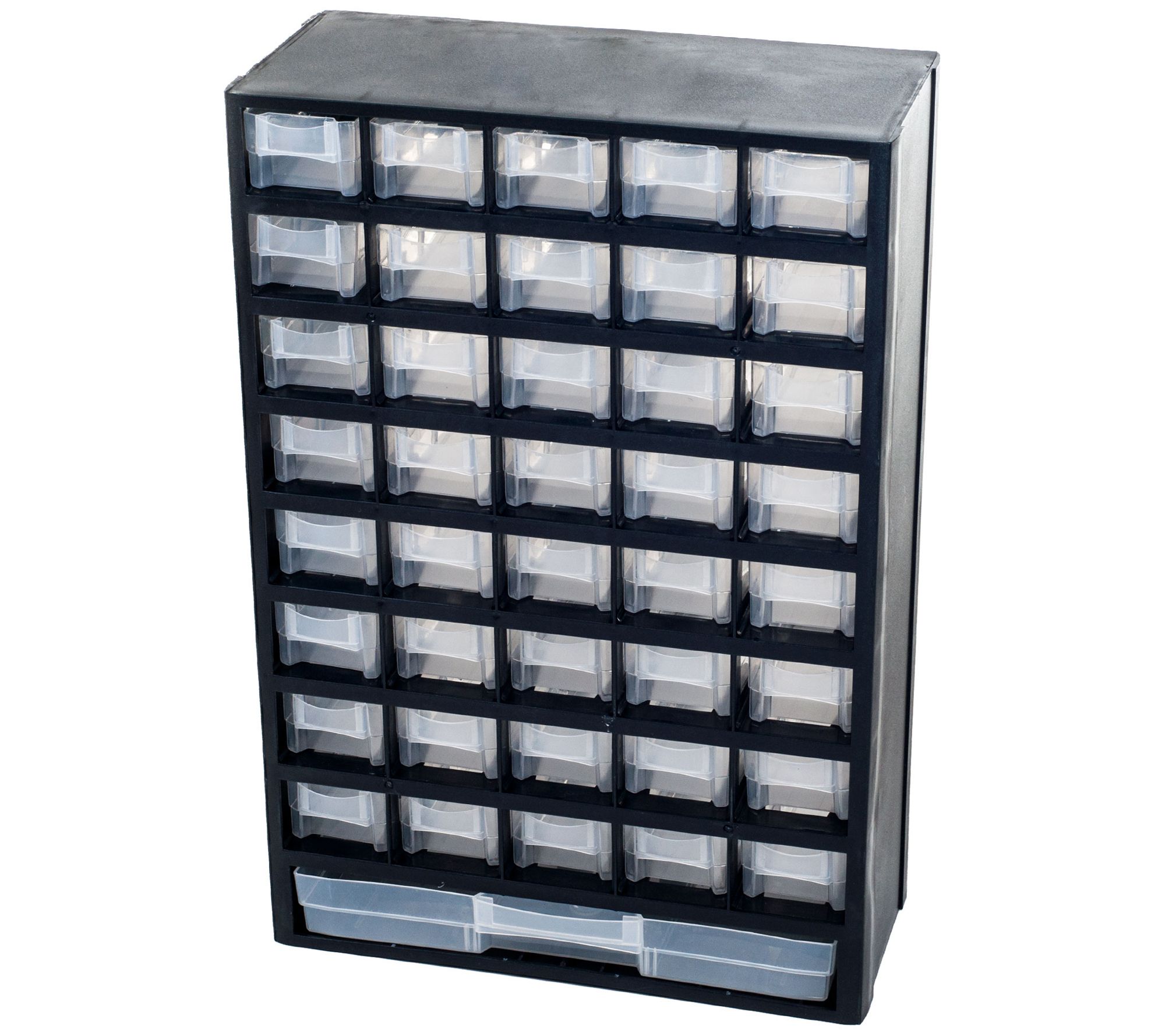 Store craft materials, extra screws, and other bits and pieces in this multi-compartment box boasting a durable design with see-through drawers for easy access. From Stalwart.