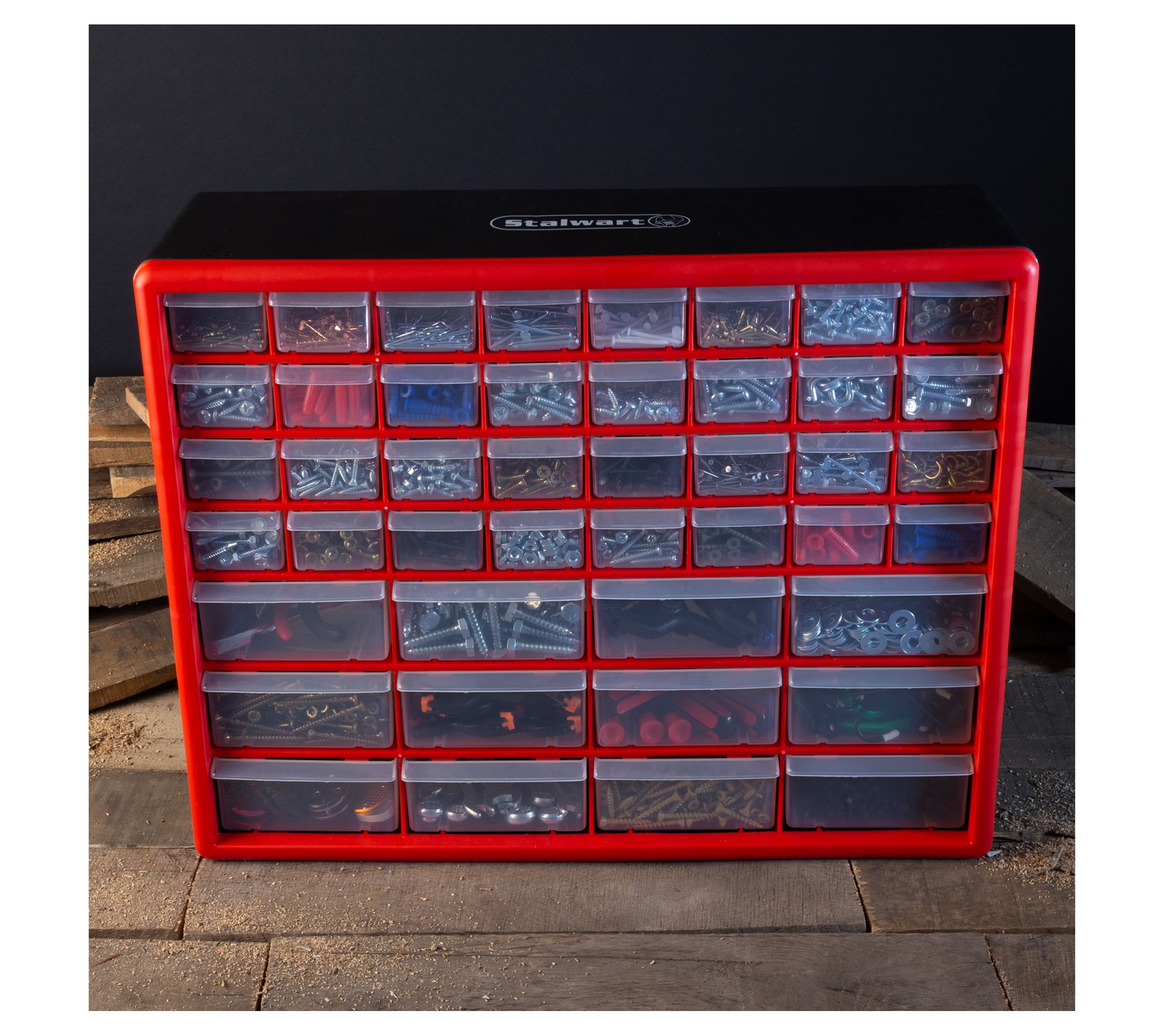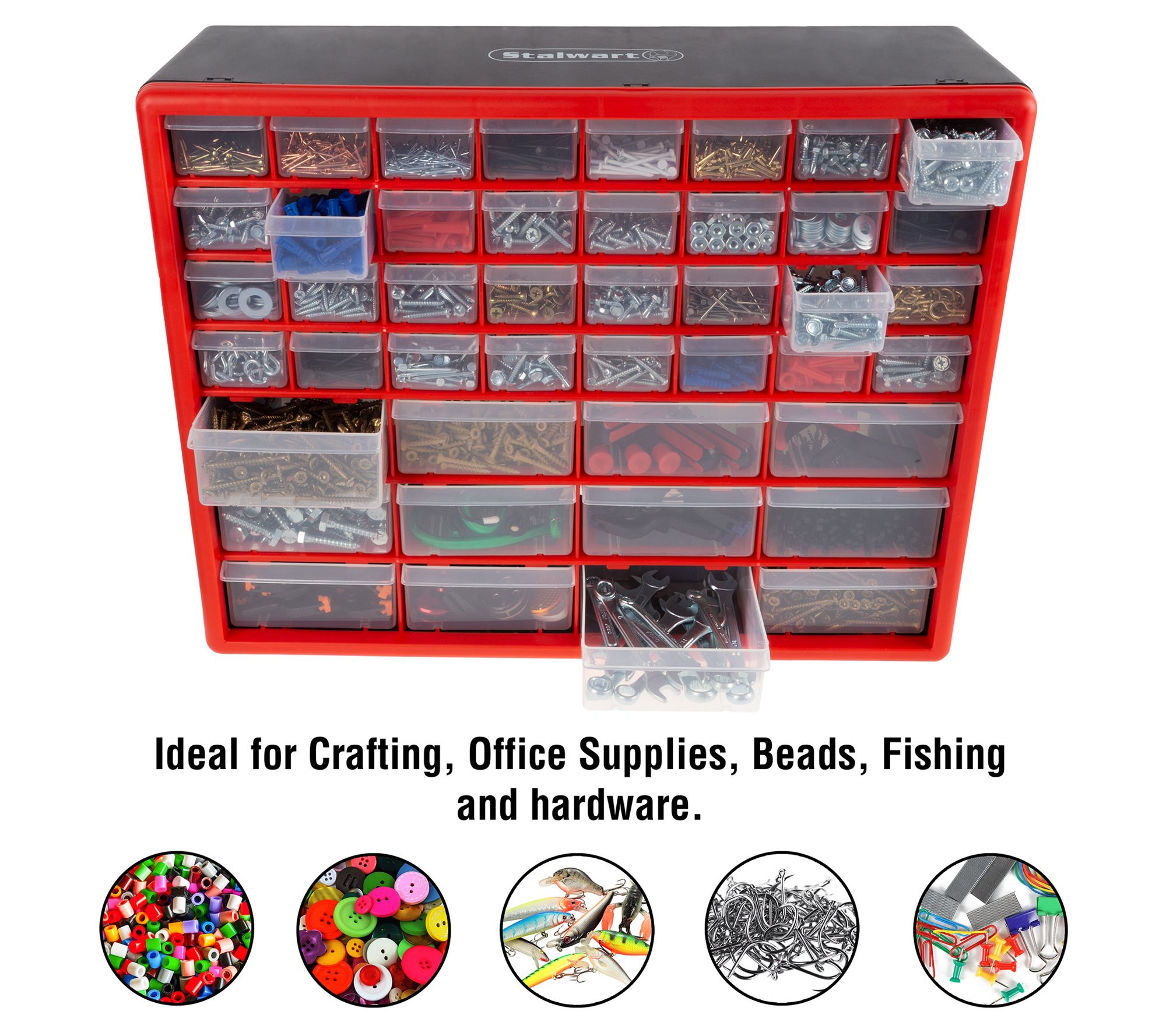 • Includes organizer with 44 see-through drawers
