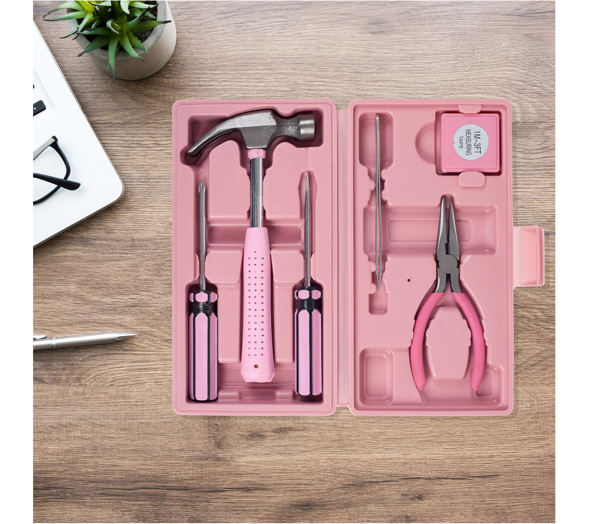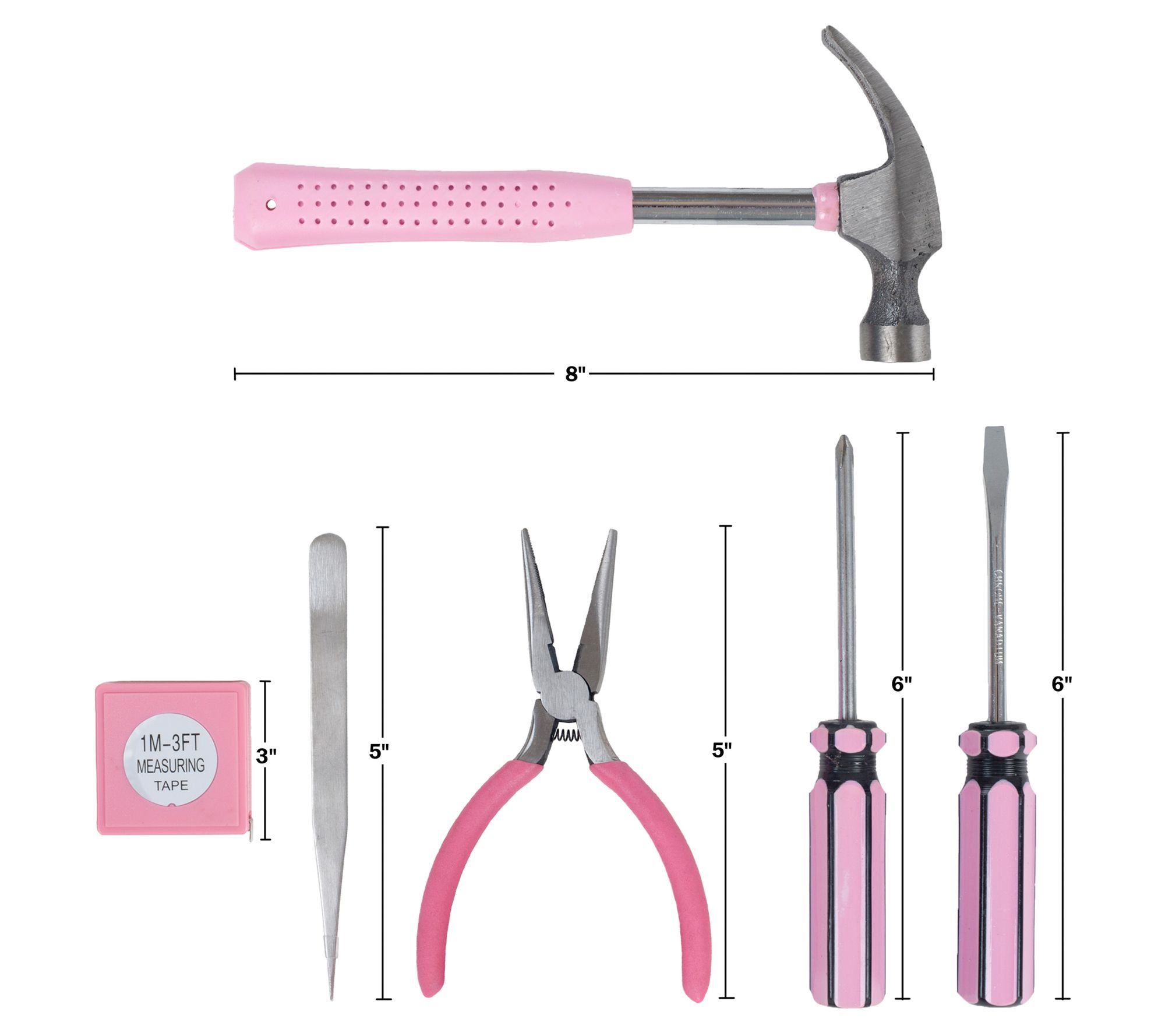 • Includes two screwdrivers, hammer, tweezers, long-nose pliers, measuring tape, and case