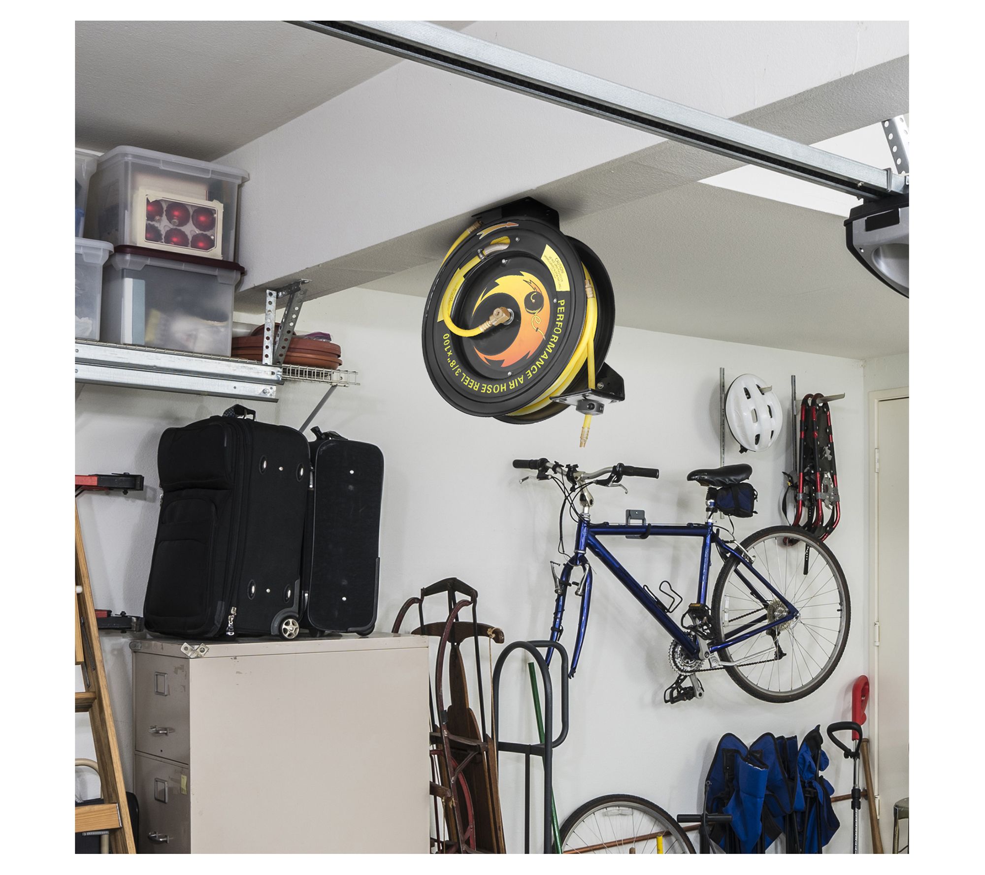 Transform your workspace with the this retractable air compressor hose. Designed for efficiency and durability, this system allows for quick access to your air hose while keeping your area tidy and safe. Perfect for professionals and DIY enthusiasts alike, this setup is a game-changer for any garage or workshop. From Stalwart.