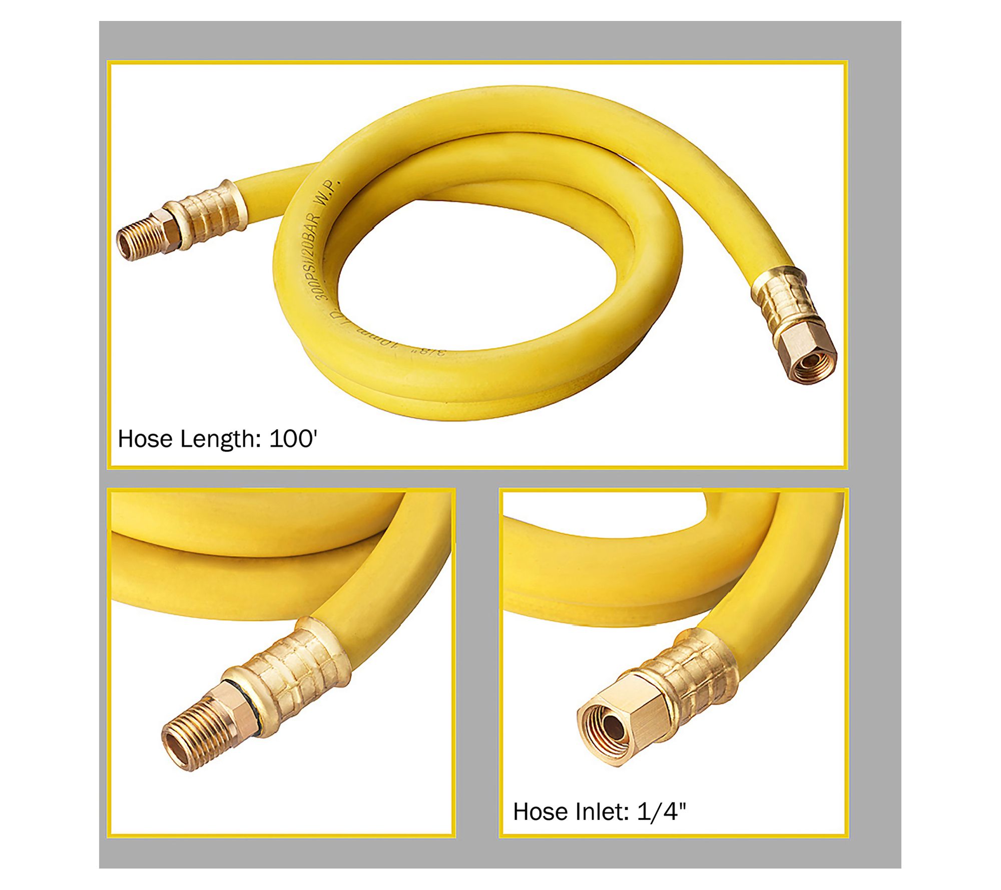 • Professional-grade, rubber hose withstands up to 300psi