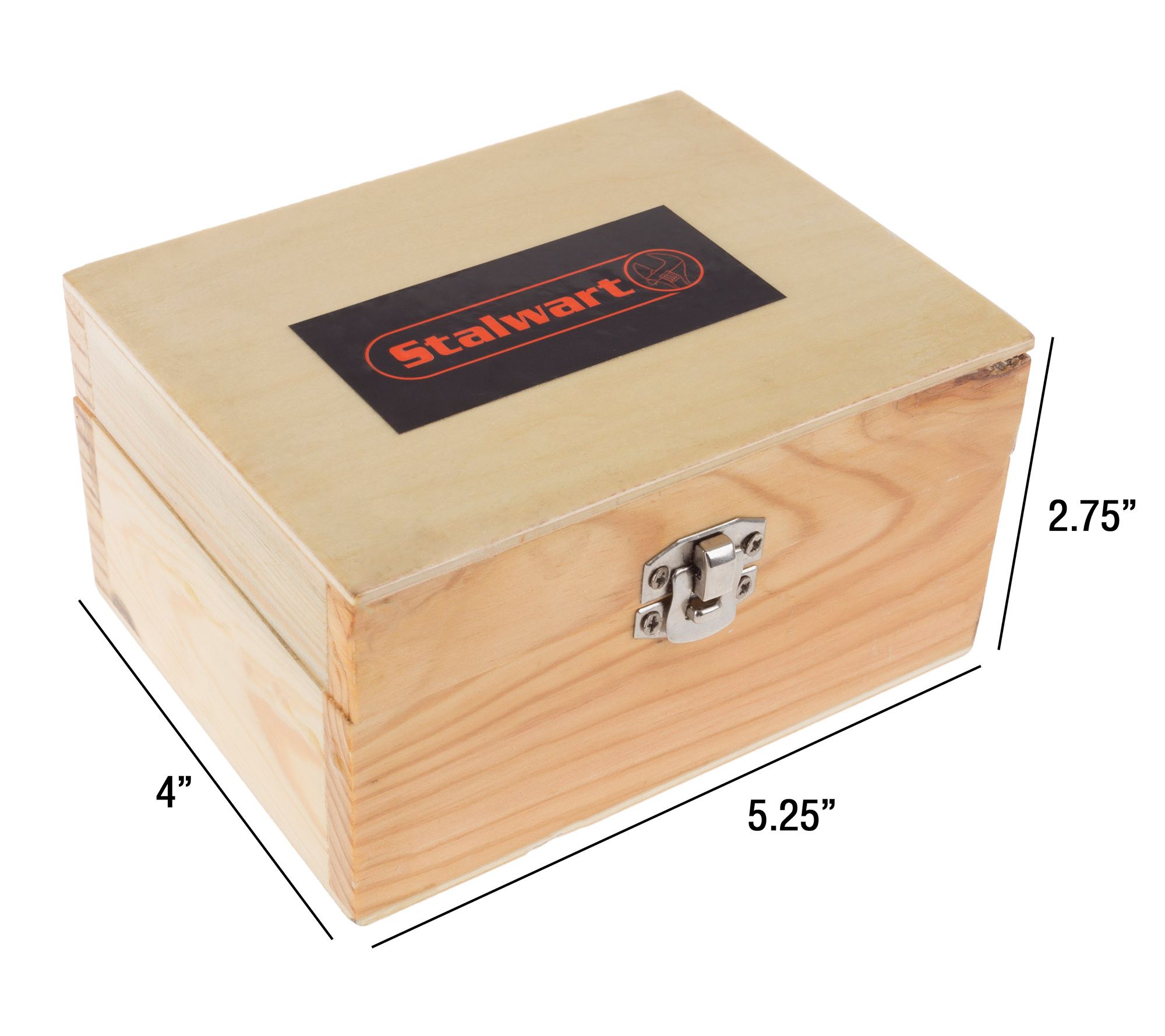 • Includes 36-piece, 1/8-inch set contains letters A-Z, numbers 0-9, and the & symbol in a wood storage case