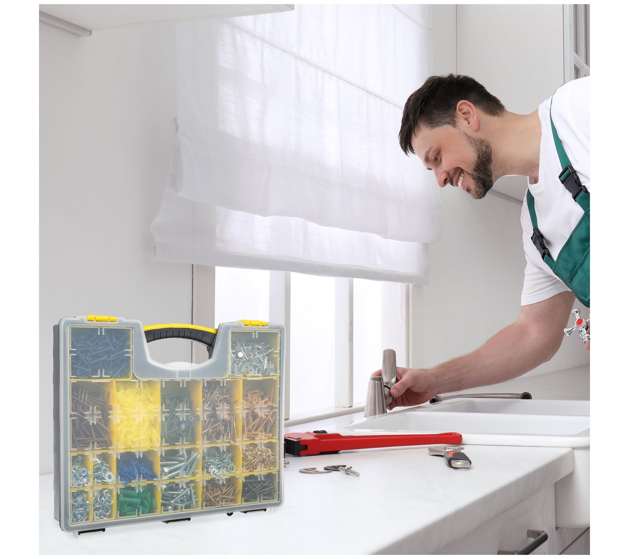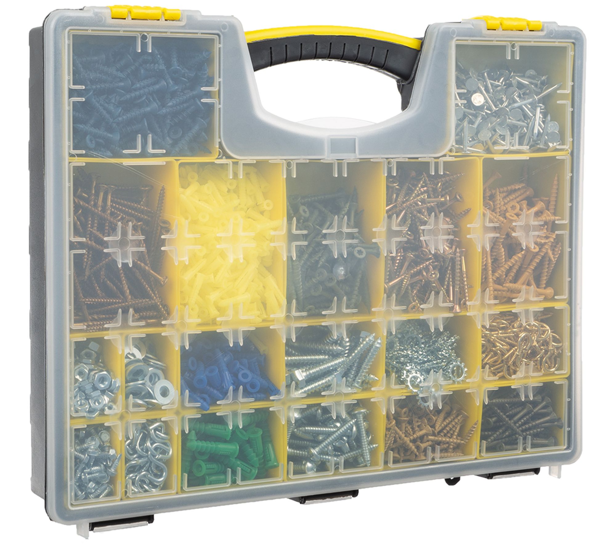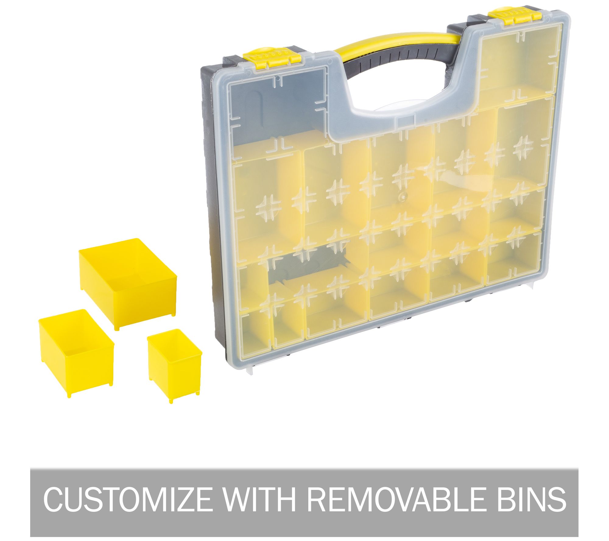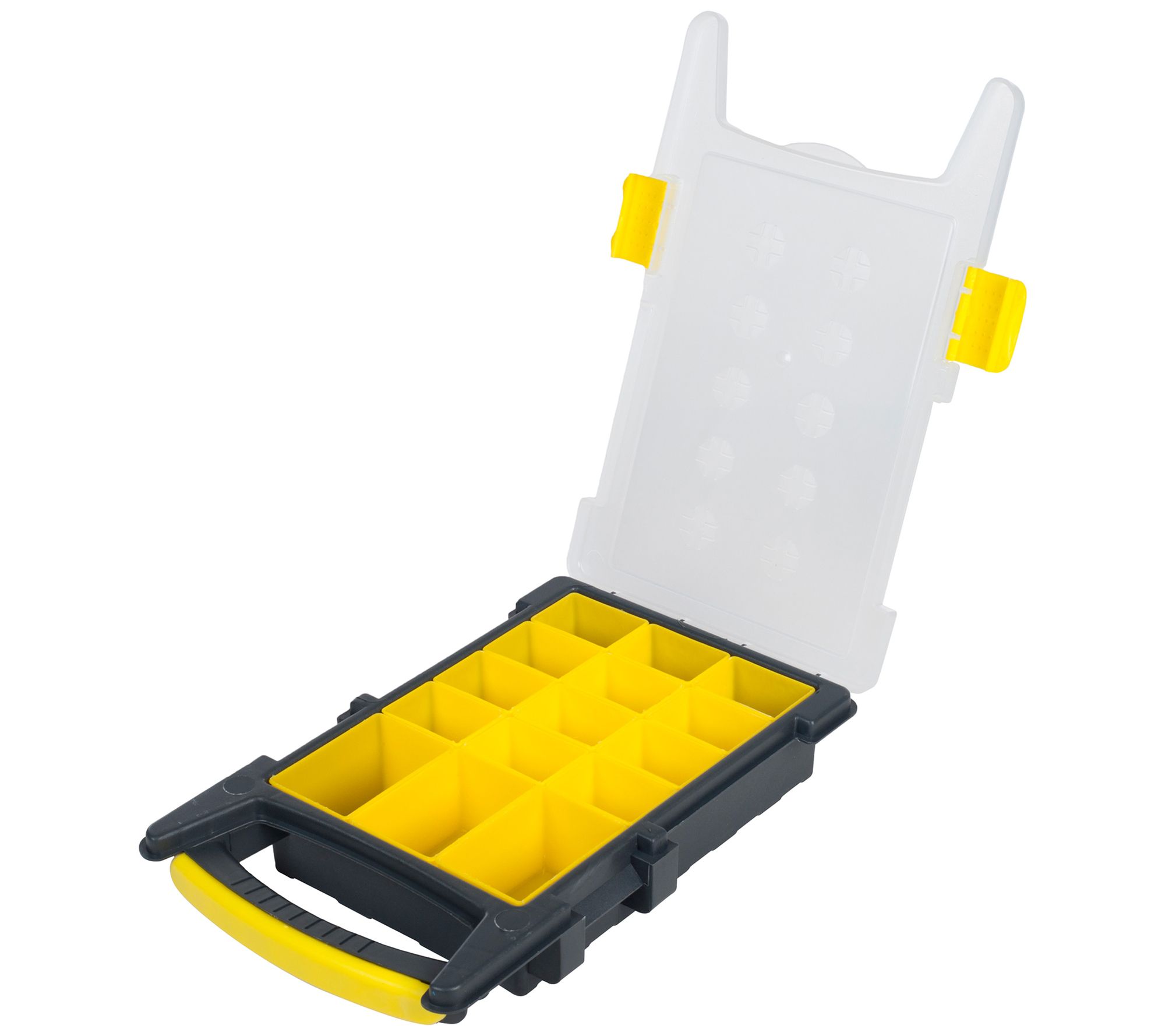 Stow small workshop essentials, nuts, bolts, and other fasteners in this set of four storage organizers, each featuring durable construction and a clear top to make locating what you need quick and easy. From Stalwart.
