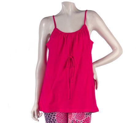 Just because you're going to bed doesn't mean you have to put your style to sleep, too. This two-piece pajama set features comfy, cotton pants with a modern floral print and a cozy cami top with empire waist, braided detail, and drawstring. From Stan Herman.