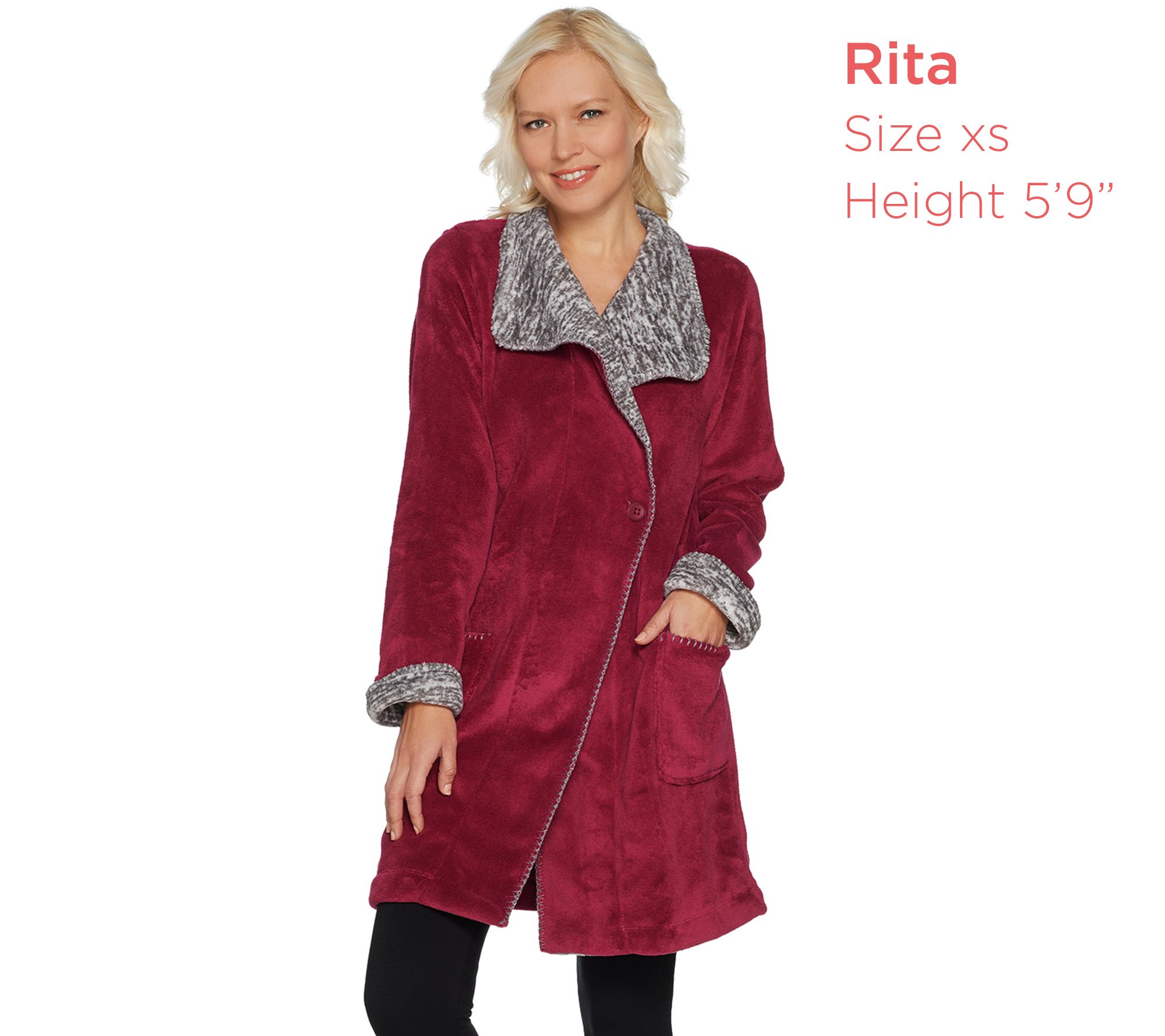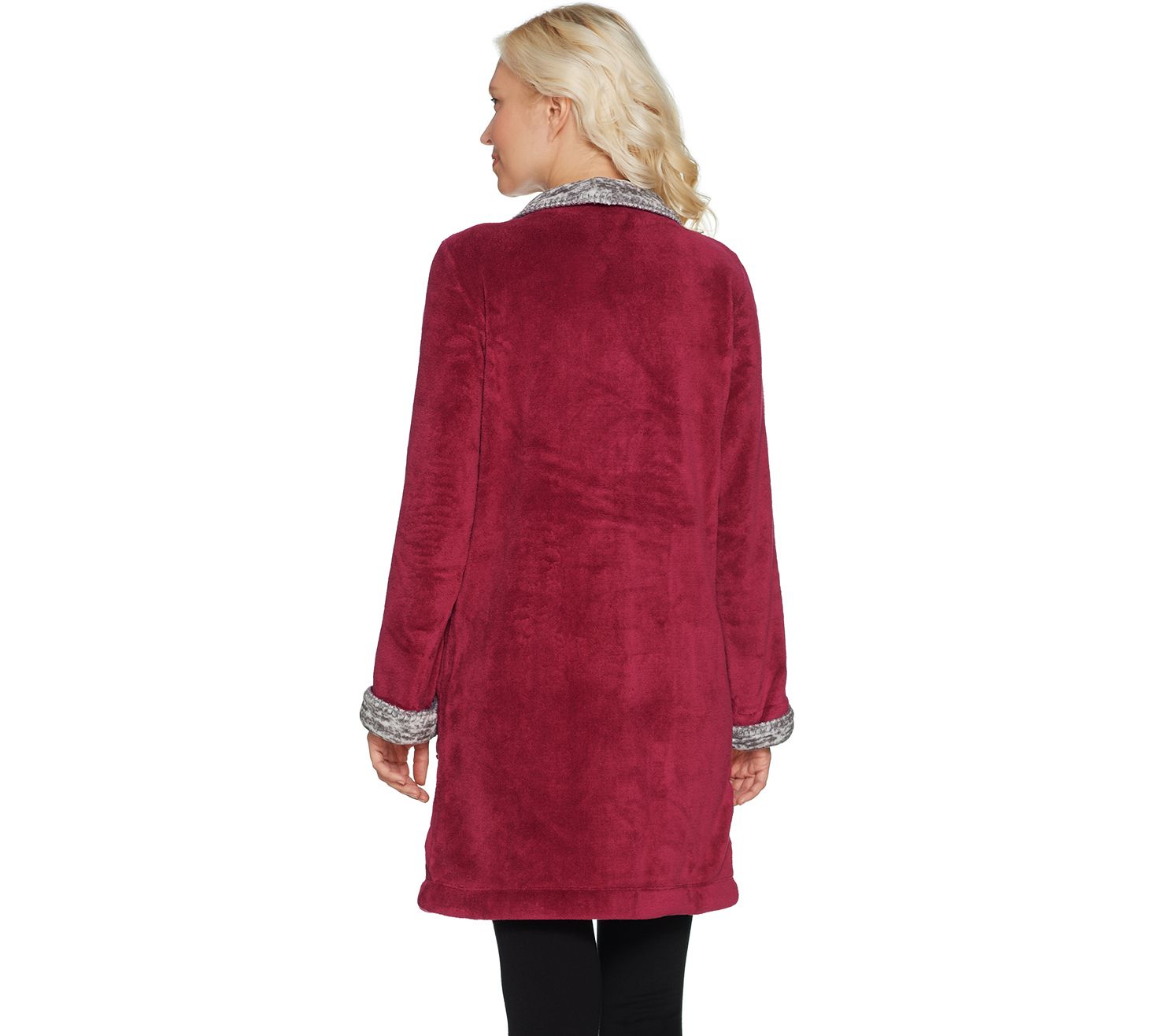 When you want to lounge but feel a little more glam, reach for this double printed plush jacket to warm and wow you. From Stan Herman.