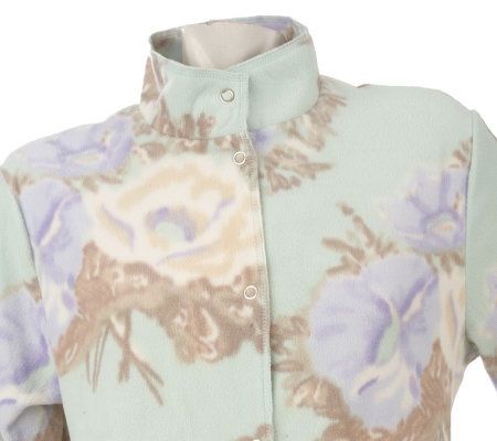 One of your favorite things. Right up there with raindrops on roses, this double-brushed, microfleece, snap-front robe is sure to make your day a little brighter. An allover floral print adds a cheery look, while the long sleeves are fashioned with convertible cuffs for a comfy-cozy feel. From Stan Herman.