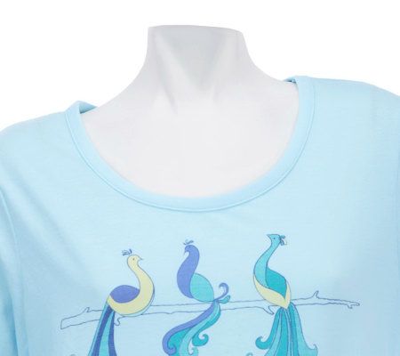 Paradise found. Birds of paradise perch happily across the front of this cottony sleep shirt, which also has side seam pockets for convenience. Its relaxed fit and softness will have you heading to bed earlier than usual! From Stan Herman.