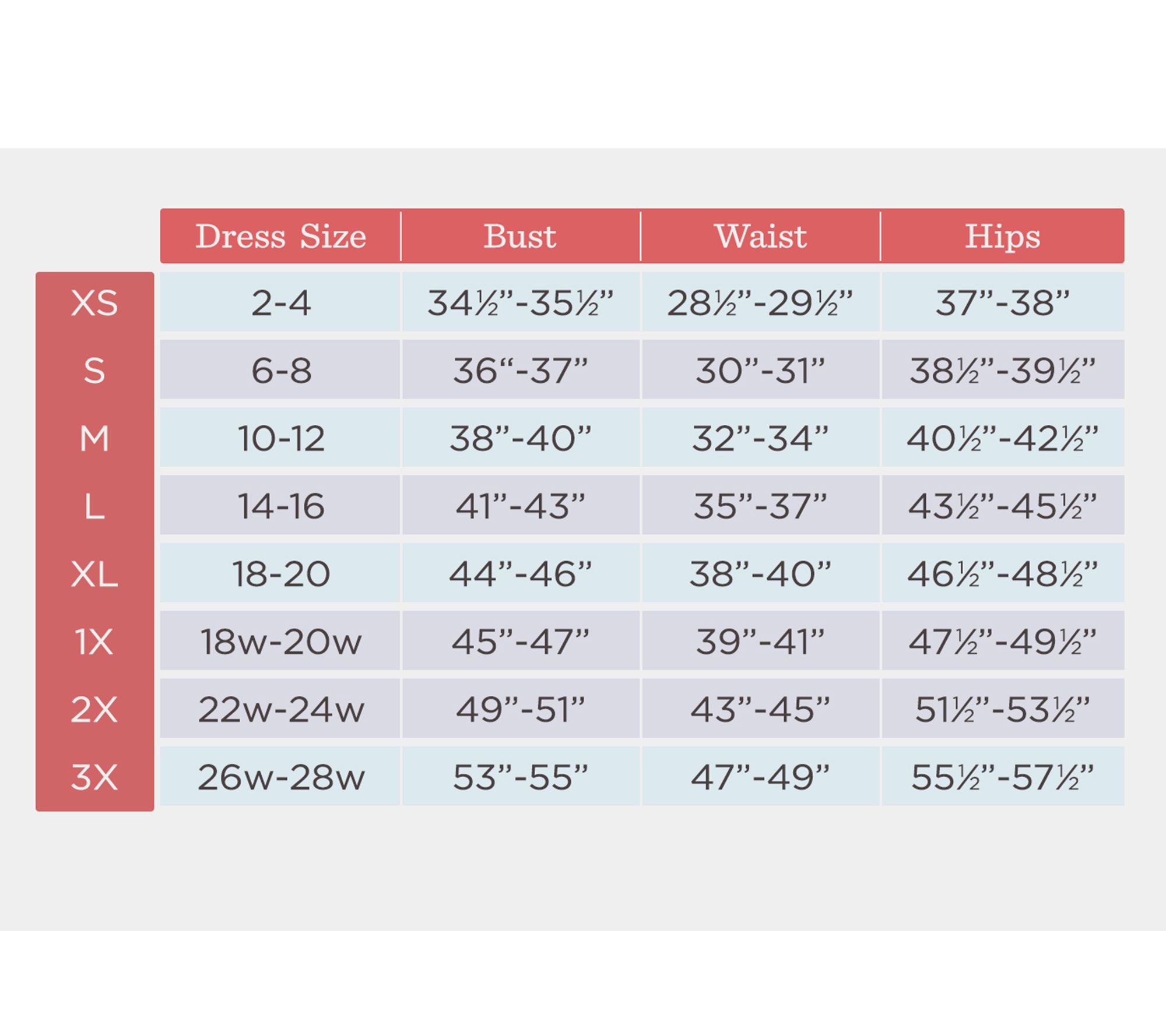 - Top Length: missy length 26-3/4" to 28-1/2"; plus length 29" to 30"