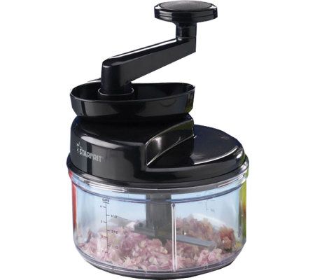 The proof is in the process. With an easy-to-use twisting handle and high-quality stainless steel blades, this manual processor chops and dices vegetables, fruits, meats, and more to create creams, dips, and even homemade baby food in minutes. An attachable whisk allows you to mix and smooth in a snap, and a removable funnel lets you quickly add liquids for dressings and spreads. From Starfrit.