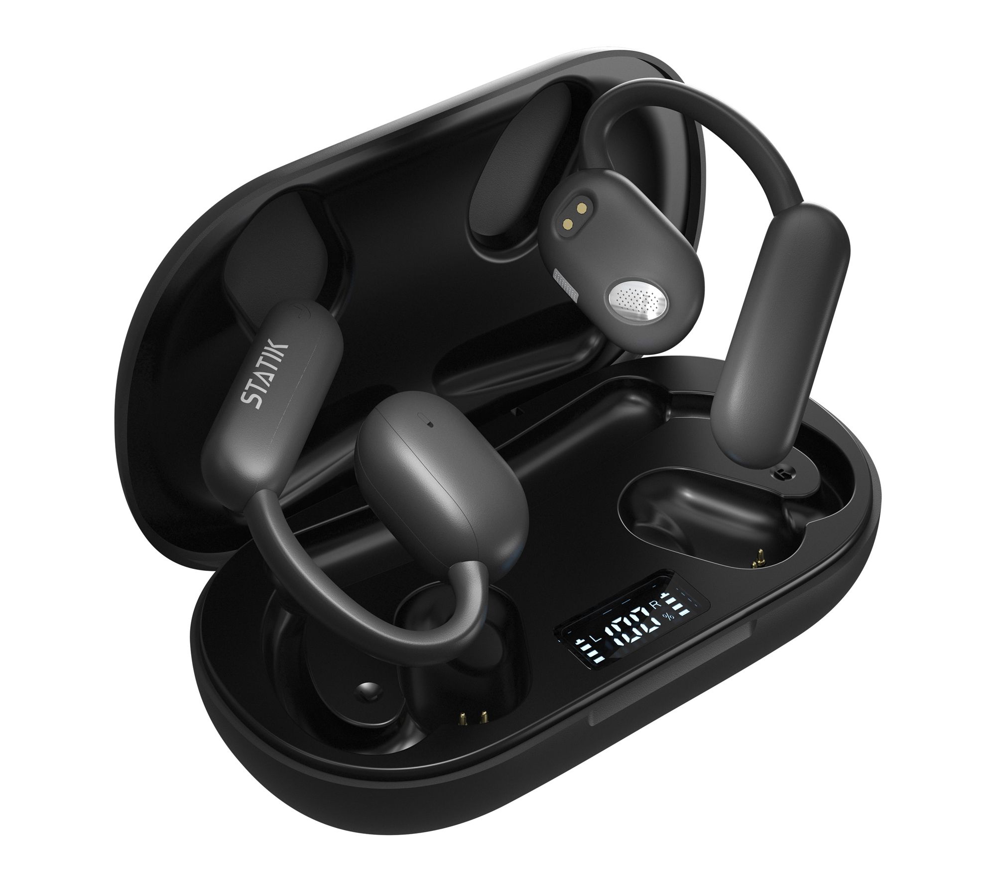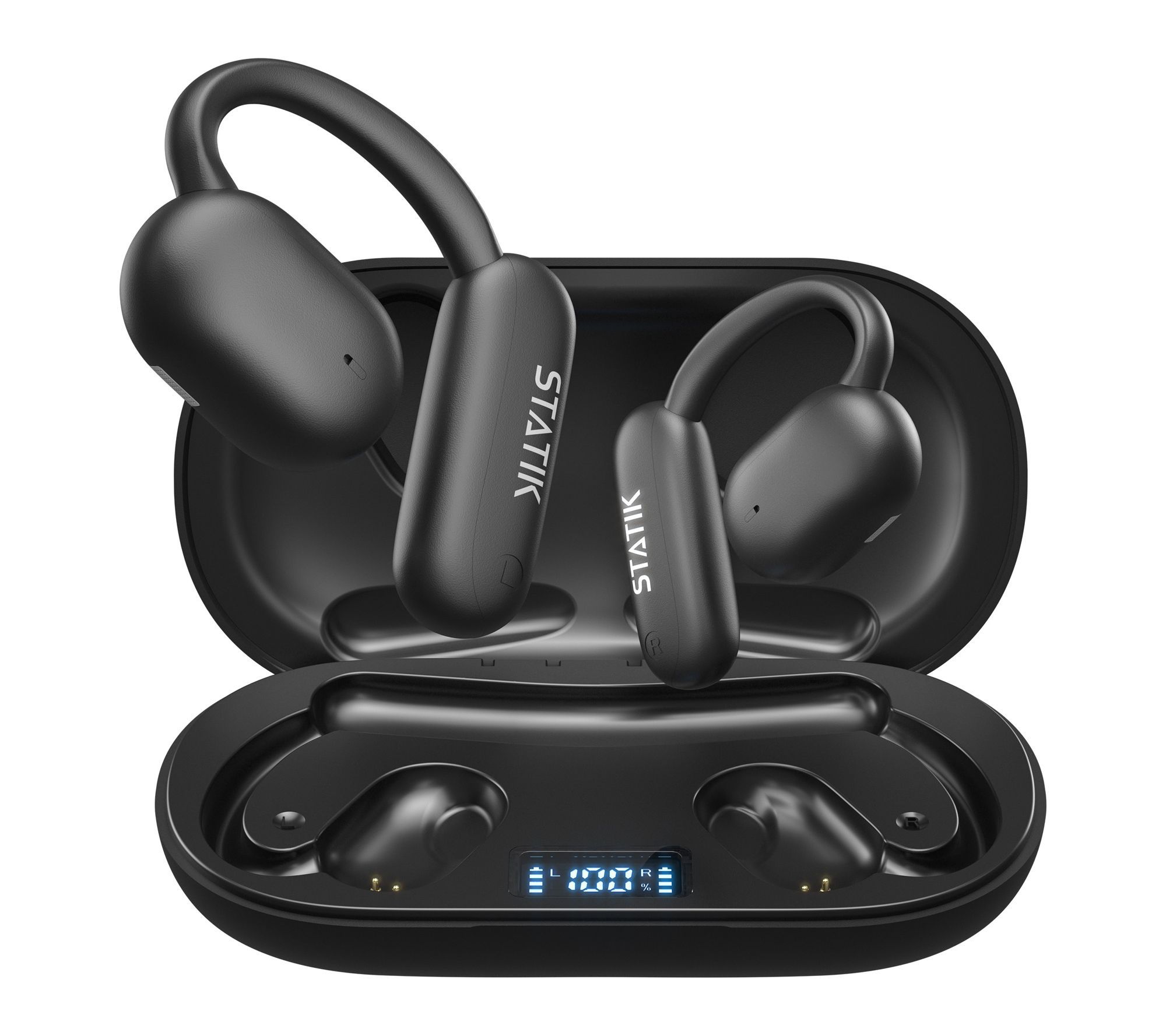 Stay connected to your surroundings while enjoying your favorite tunes with these open-ear wireless earbuds. Designed for active lifestyles, the earbuds deliver crisp, clear audio while letting you hear your surroundings via bone conduction technology -- so you can catch every beat while jogging outdoors, biking through the city, or staying alert at work. The lightweight, comfortable fit makes them ideal for all-day wear. From Statik.