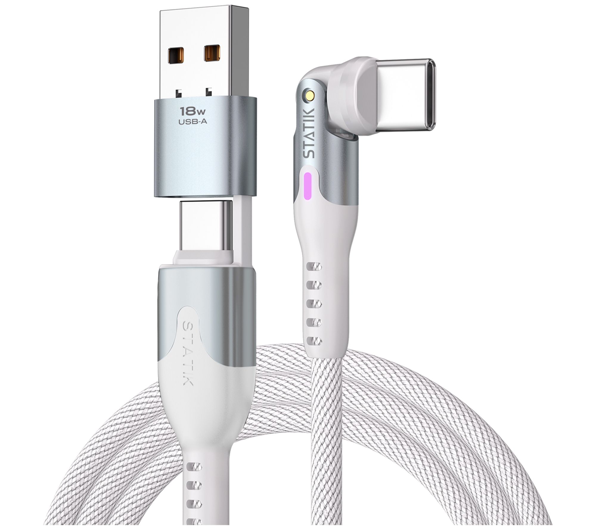Keep your gadgets charged and organized with the Statik PowerPivot Pro Nylon Braided USB-C to USB-C Cable. Its unique 360-degree rotating connector ensures that you can effortlessly use your phone in any orientation without any disruptions. From rapid data transfer to military-grade durability, this cable promises a seamless and long-lasting experience. From Statik.