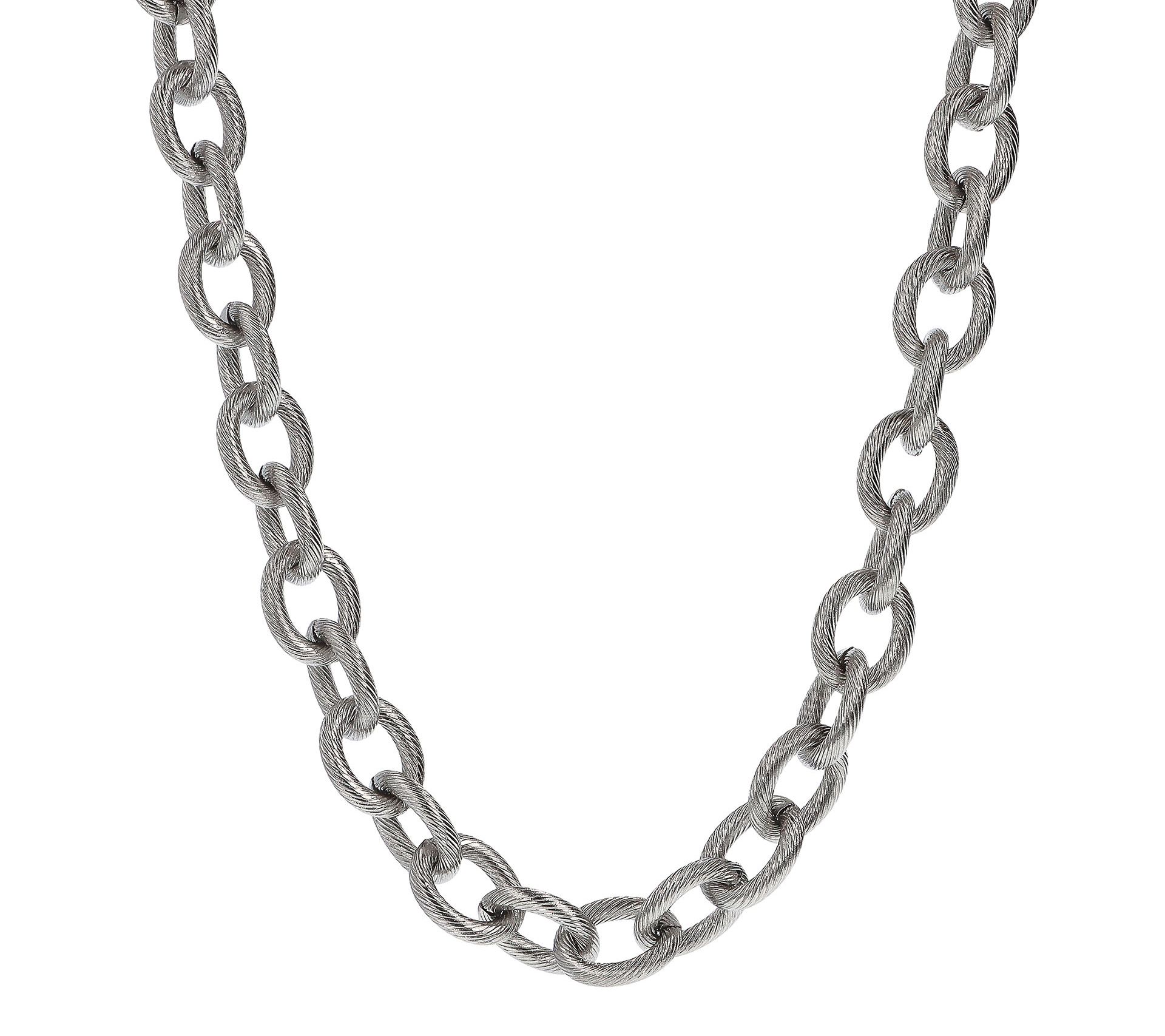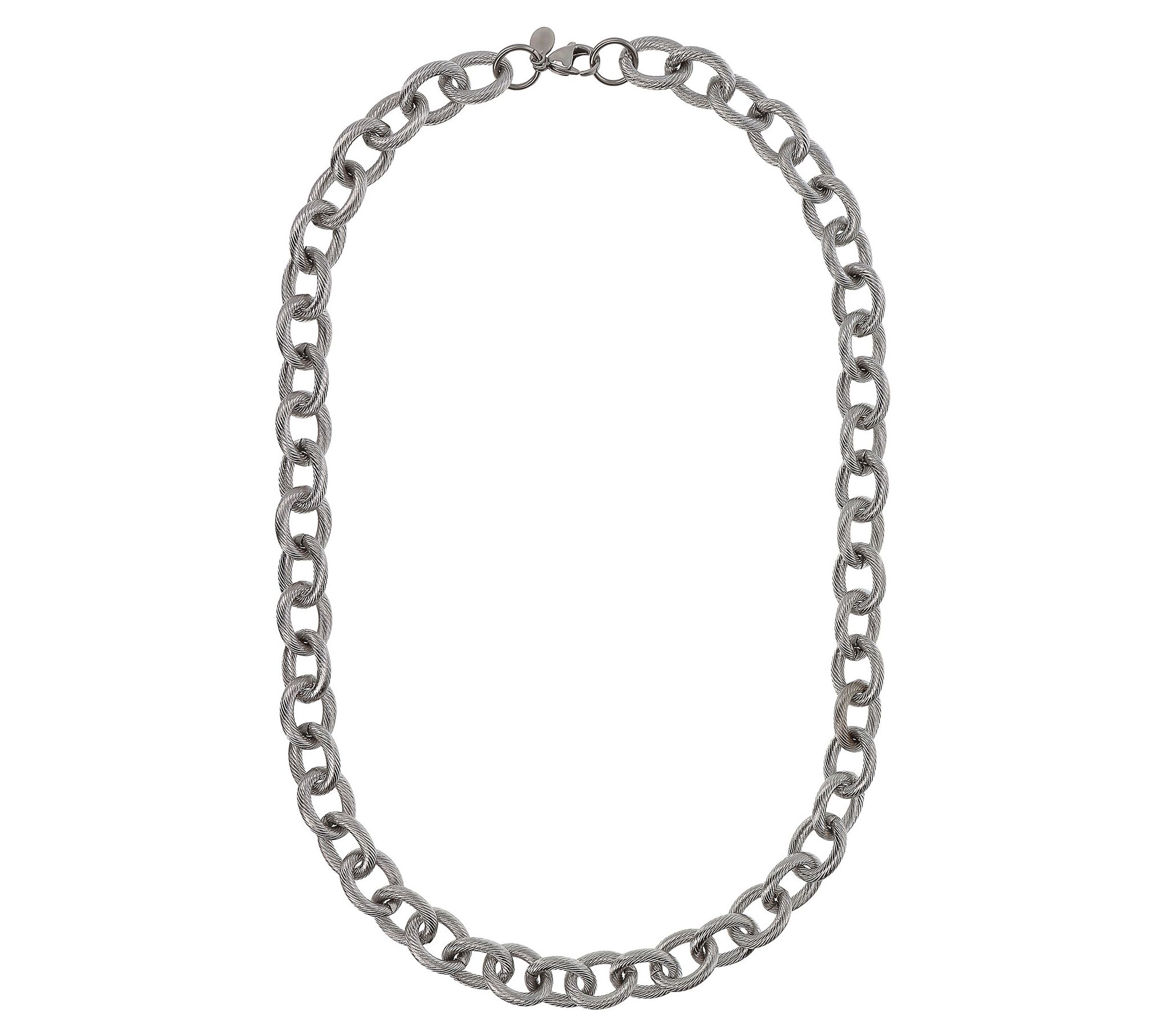 Elevate your style with the Steel By Design textured oval link necklace. This chic piece features textured links that add a touch of sophistication to any outfit. Secure it effortlessly with the lobster claw clasp and enjoy the elegant look it brings to your ensemble. From Steel By Design.