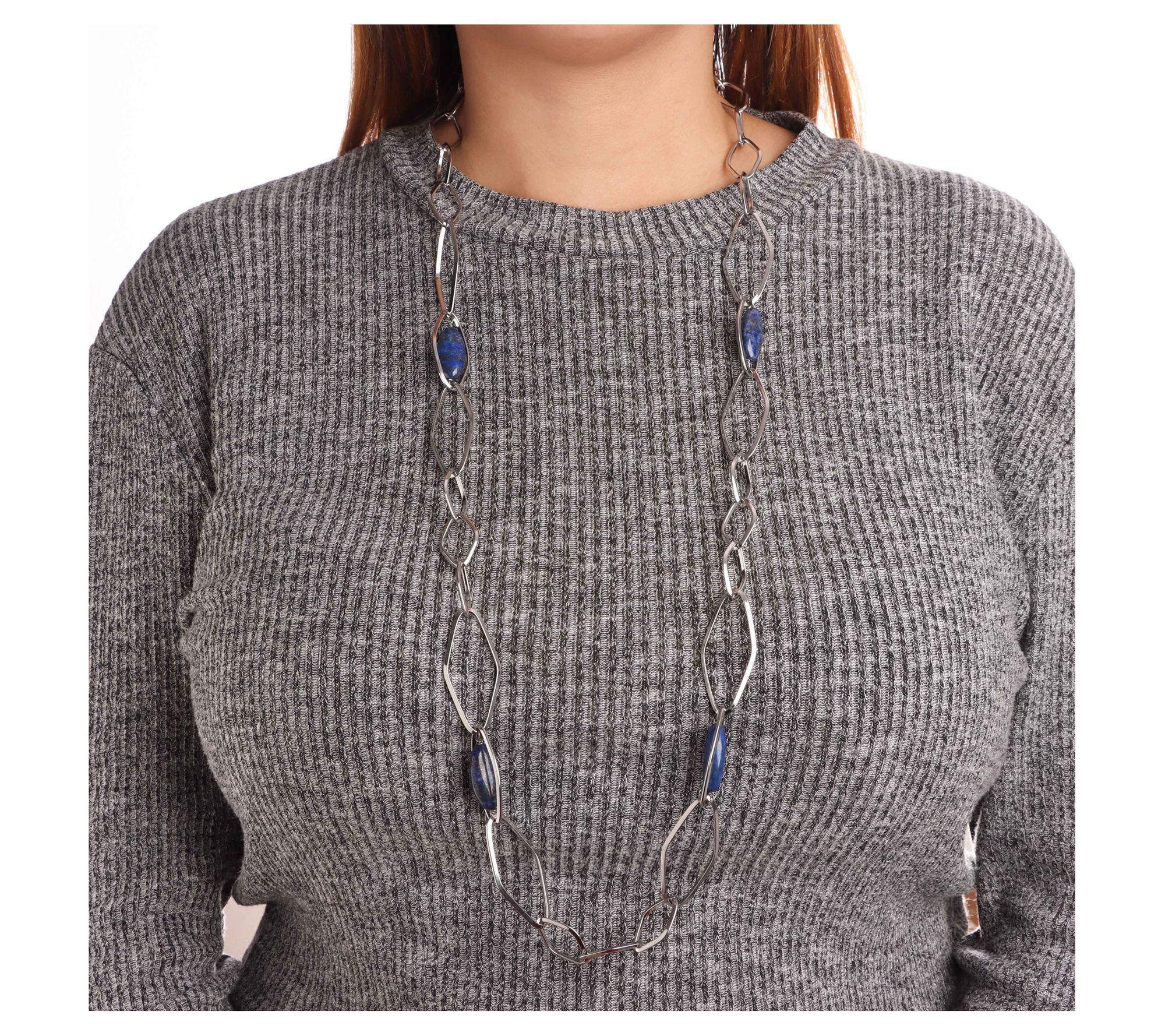 Steel by Design 36" Marquise Gemstone Bead Station Necklace